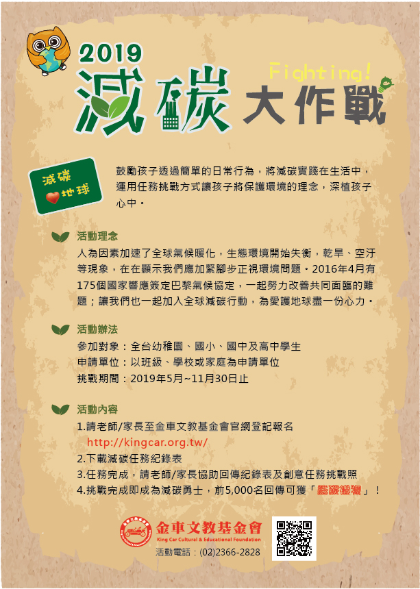 一、鼓勵孩子透過簡單的日常行為,將減碳落實在生活中,運用輕鬆簡單的任務挑戰方式讓孩子參與,將保護環境的理念,透過活動深植孩子心中。