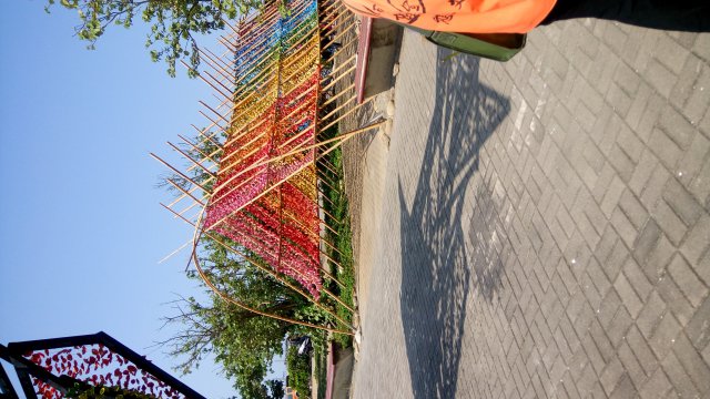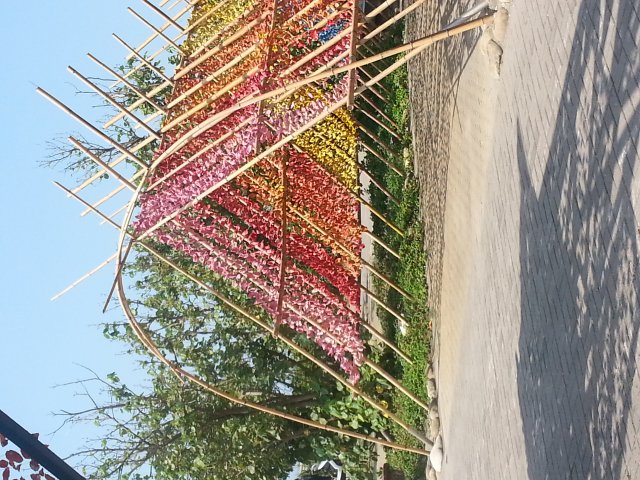 阿祖家在新竹縣峨嵋鄉的山崗,下了竹東交流道車子就駛入了鄉間曲折蜿蜒的小路。一路上可欣賞翠綠的樹林、陡峭的山崖、還有漂亮的茶樹園,盡是讓人心曠神怡的山景。媽媽說這是在都市裡看不到的景色,看了讓人心情放鬆,要我和弟弟好好享受。大約過了兩個小時的車程,終於到了阿祖家,我和弟弟先向阿祖拜年,阿祖很開心,給了我們一個大紅包。