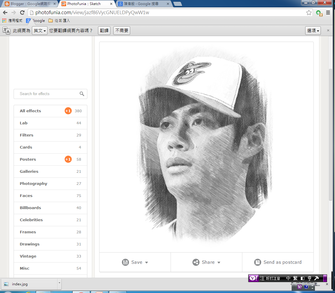 利用這個網站,可以輕鬆地將照片轉成類似素描的作品,以陳偉殷為例: