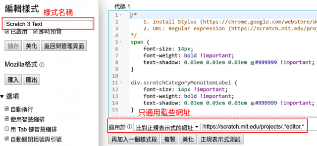 2. URL: Regular expression (https://scratch.mit.edu/projects/.*editor.*)