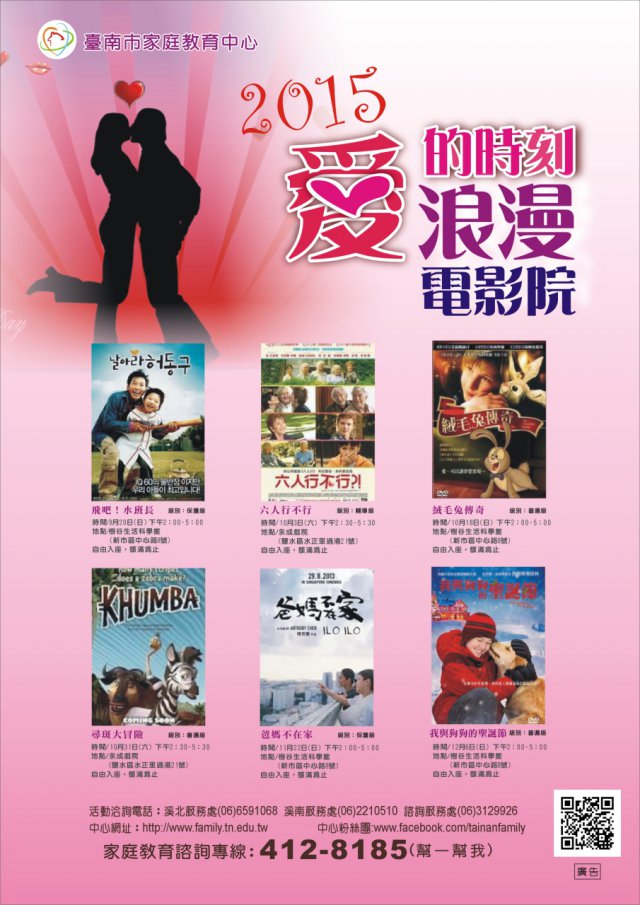 本市家庭教育中心辦理104年「愛的時刻浪漫電影院」活動,請協踴躍參加。
