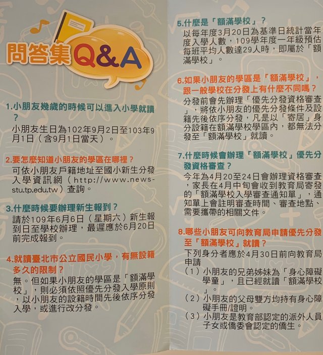 {最新消息}臺北市109年公立國民小學新生分發及入學辦法