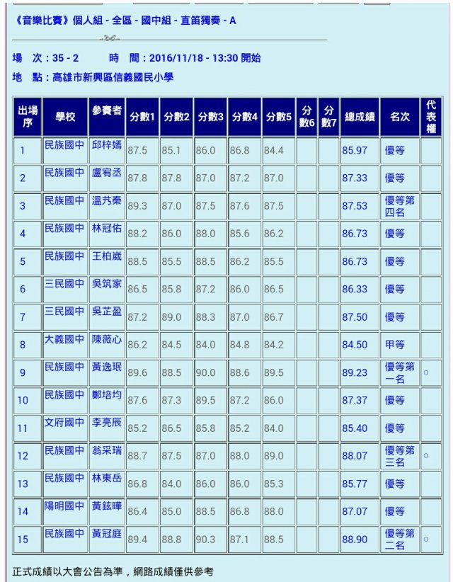 全國學生音樂比賽高市初賽 國中組直笛合...