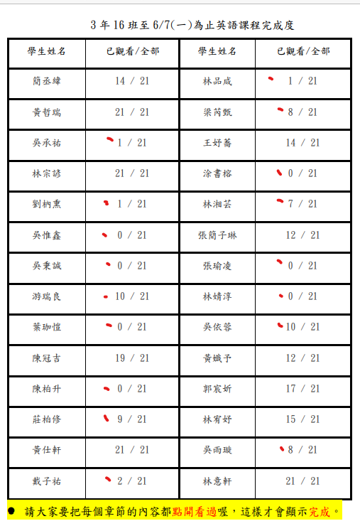 學習吧每個班都還是有部分學生未完成測驗,請家長協助提醒小朋友,謝謝。