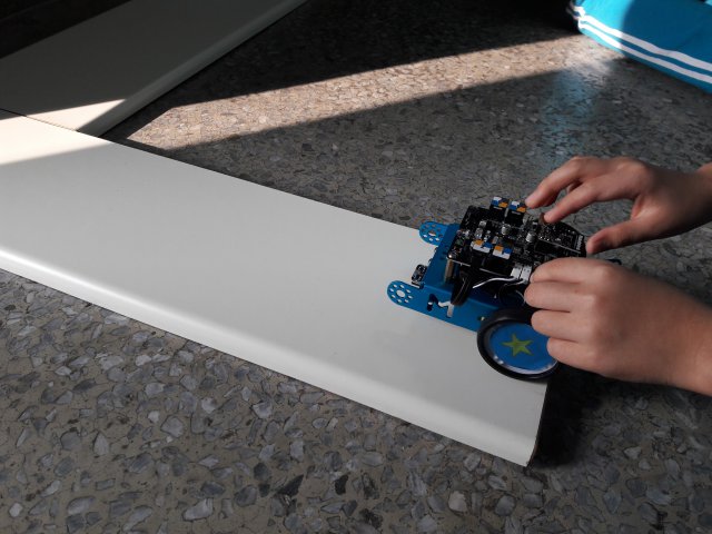 新年度的第一次社團活動,延續上星期的 mBot 賽道自走練習。今天的賽道變得更窄更有難度了,小朋友嘗試著更難的挑戰。不過最有趣的居然是踩地雷遊戲。