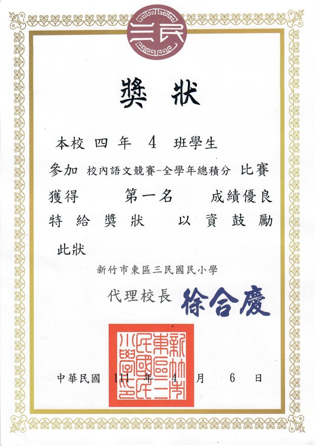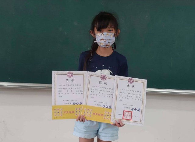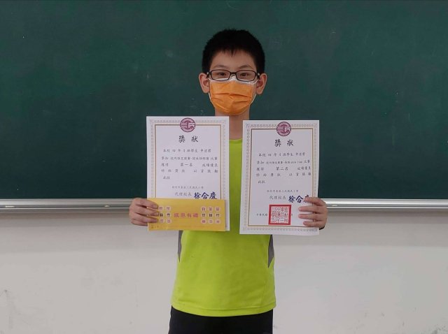 賀!季庭榮獲「國語字音字形」第一名、「作文」第一名,