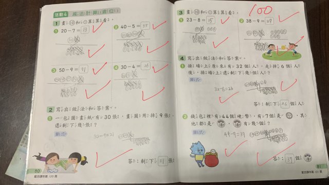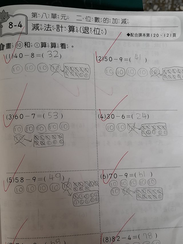 )(留意進位退位(退位要拿1個十來減,從10減))(一下康軒版數學L8)