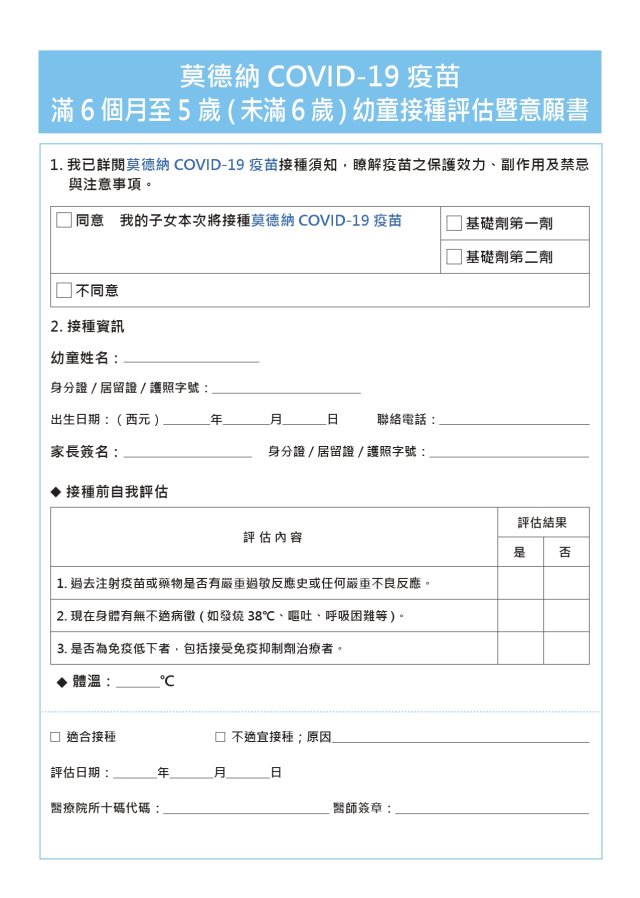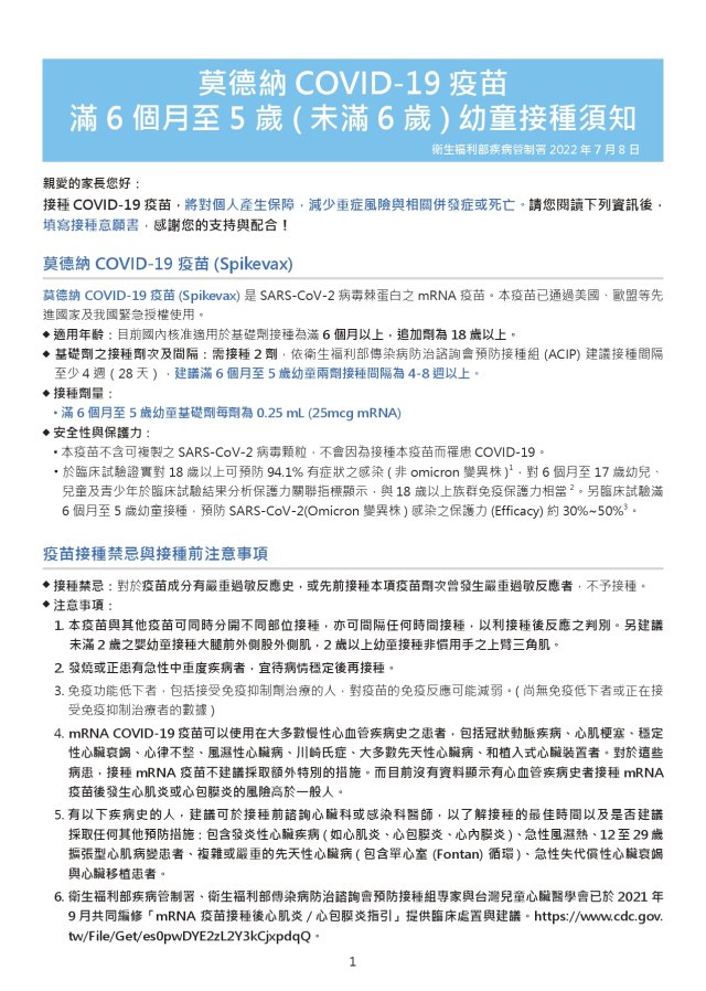莫德納 COVID-19 疫苗 滿 6 個月至 5 歲 ( 未滿 6 歲 ) 幼童接種須知