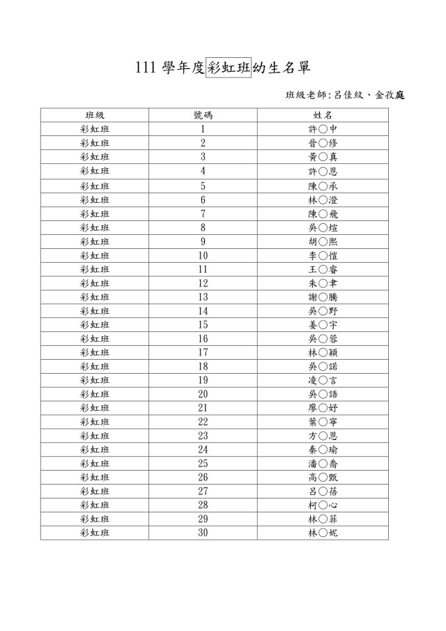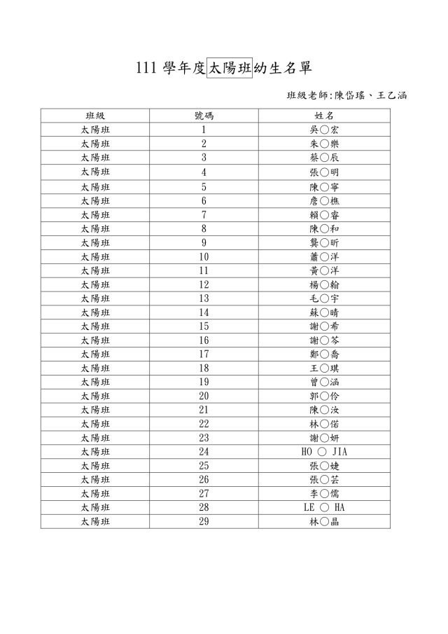 附檔有111學年度長安附幼編班名單公告及長安附幼教室平面圖!(請點選藍色標題)