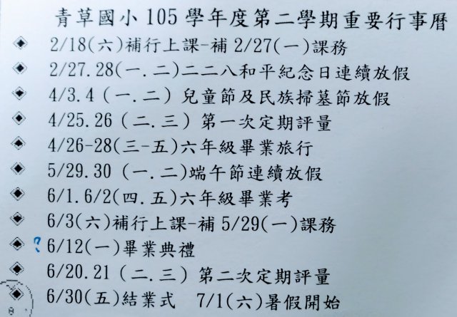 四下學期行事曆