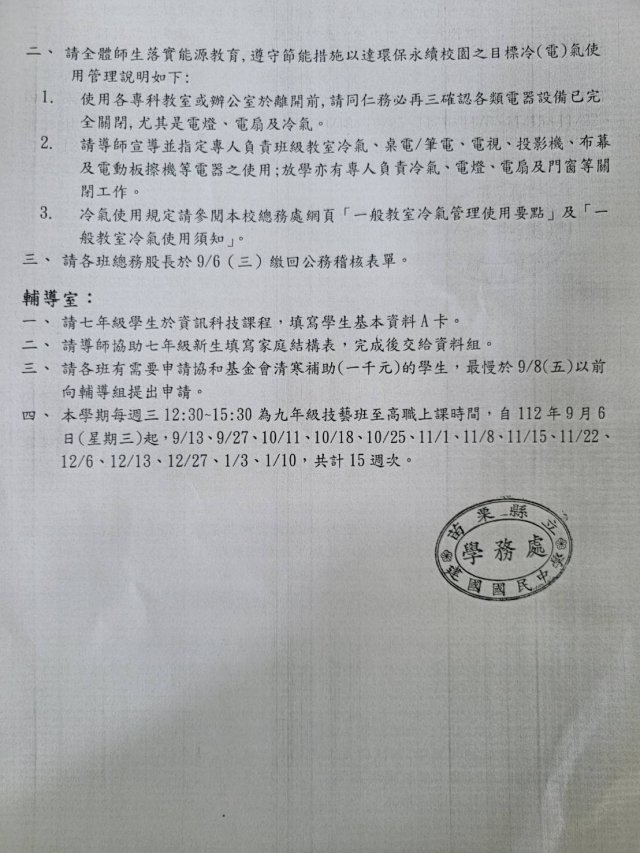 第一週班會聯絡事項