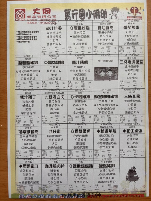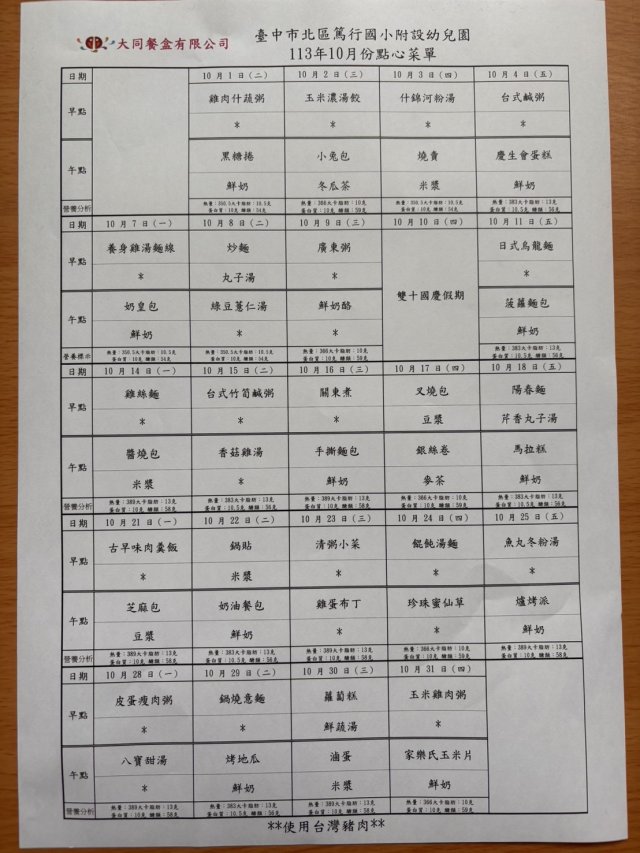 113 10月菜單