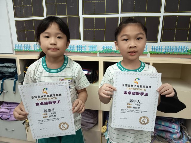 恭喜寶貝參加全國奧林匹克數理競賽金卓越數學王榮獲二年級組優異獎