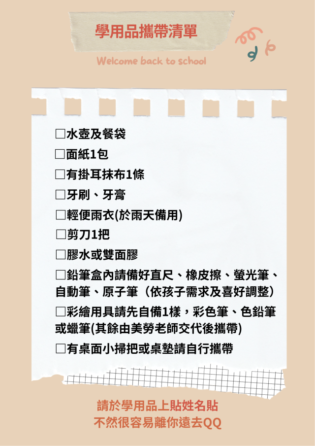 學用品清單請參考附件準備