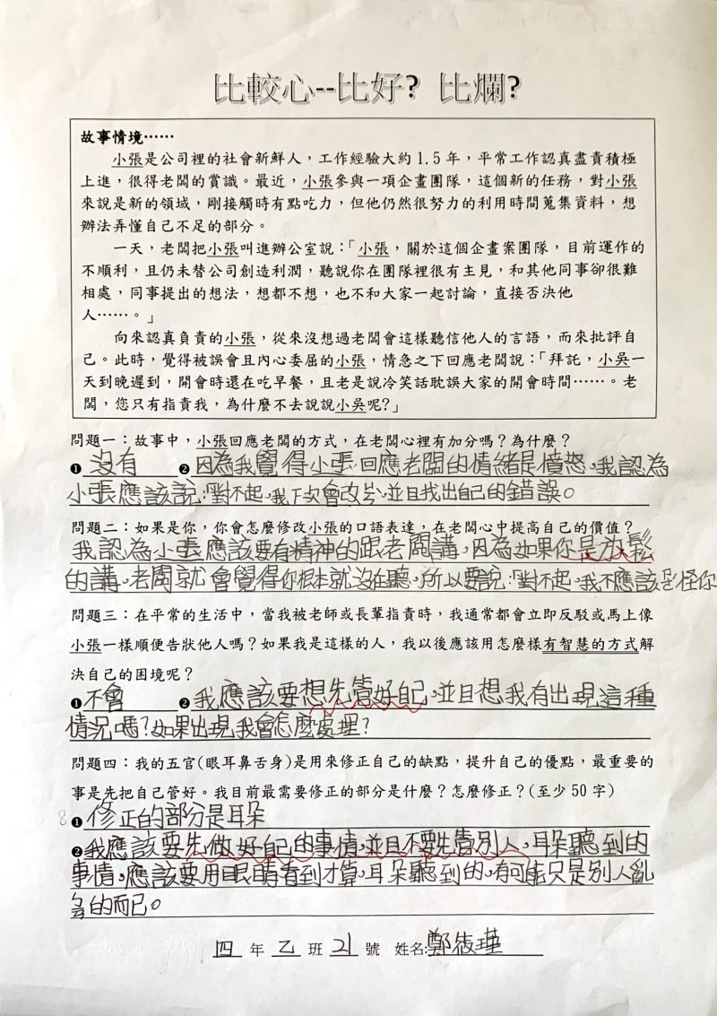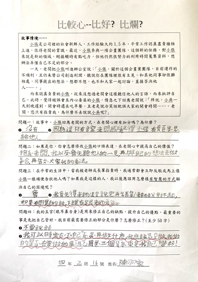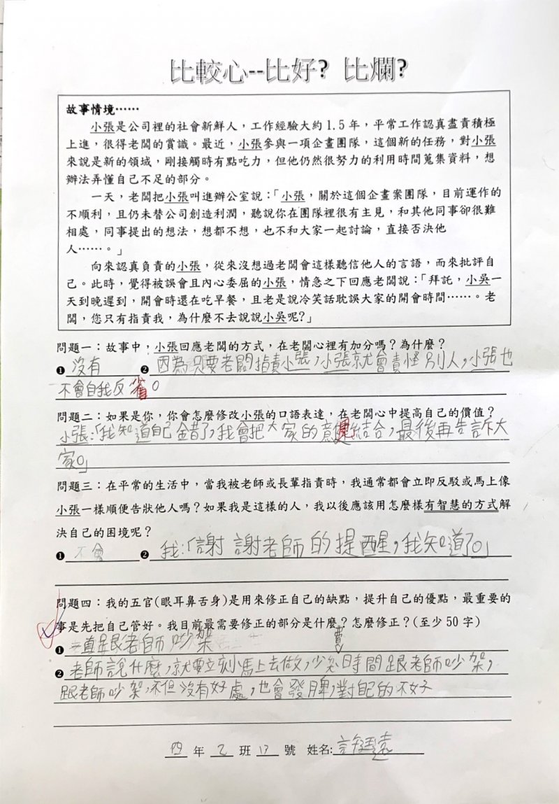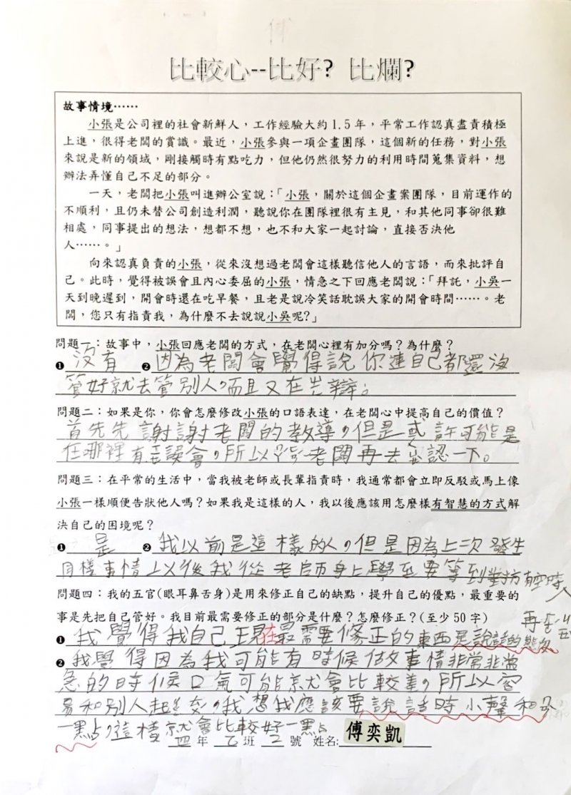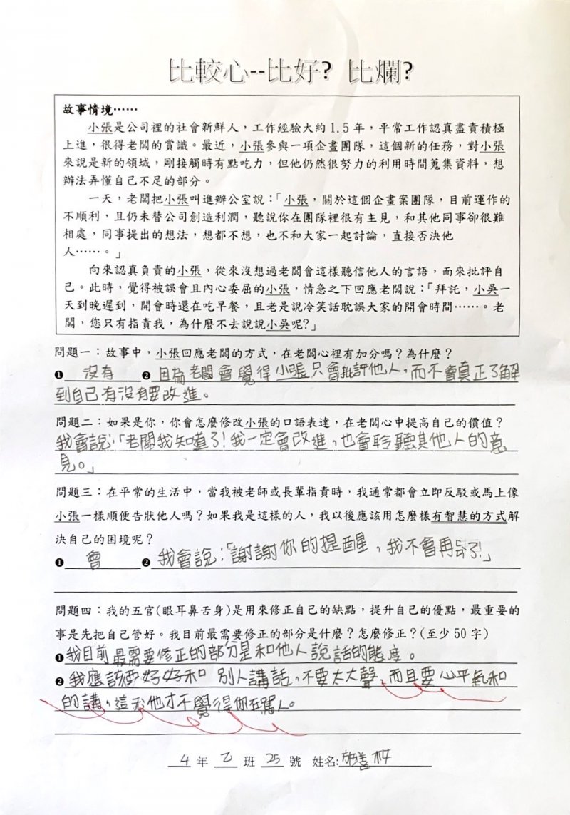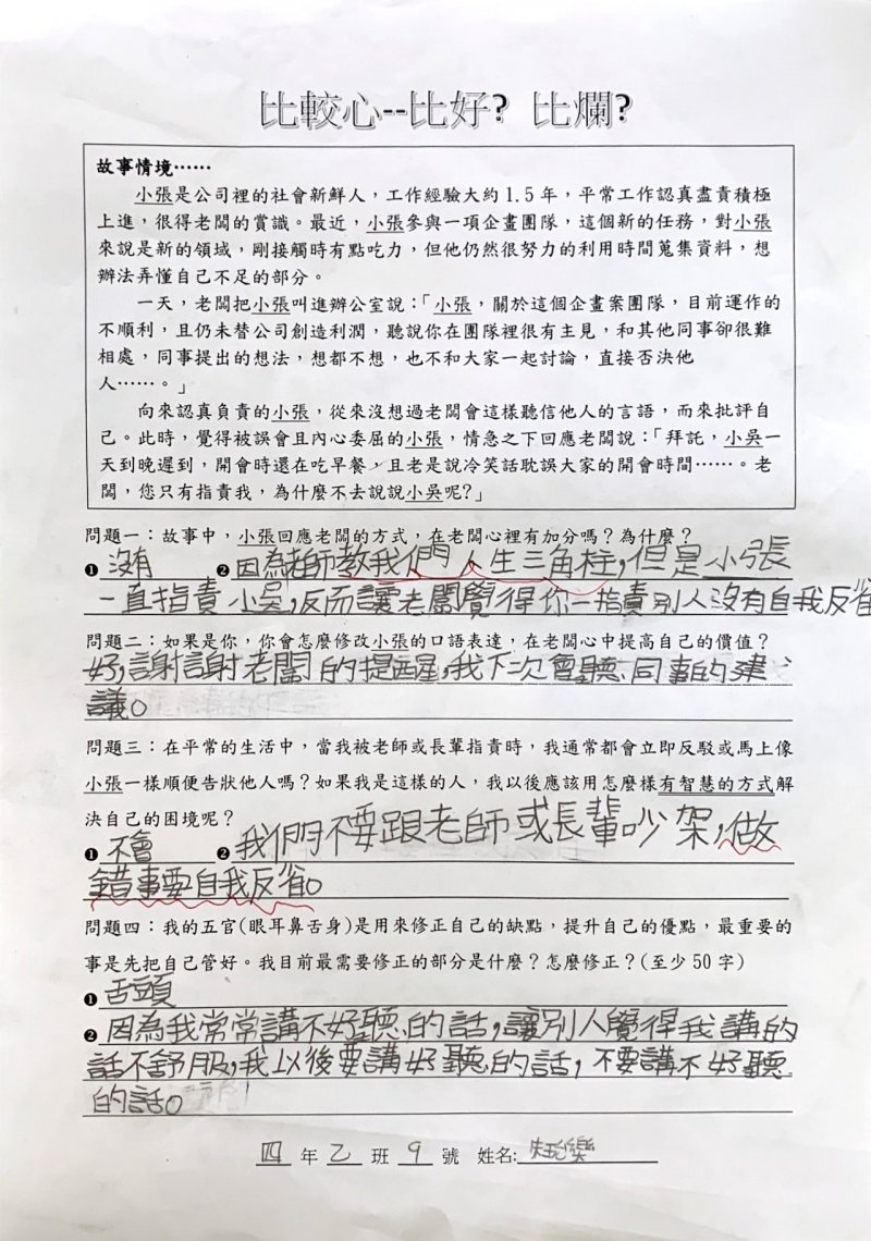 【比較心學習單優秀作品得主】