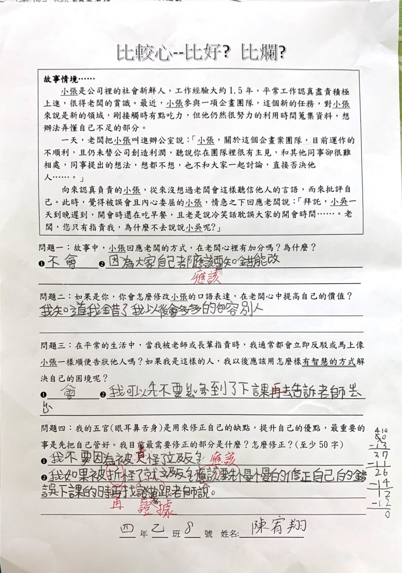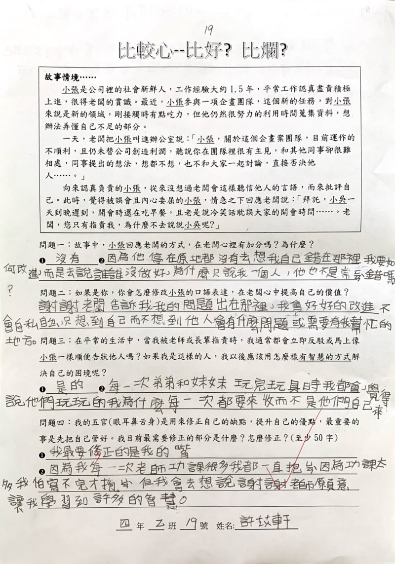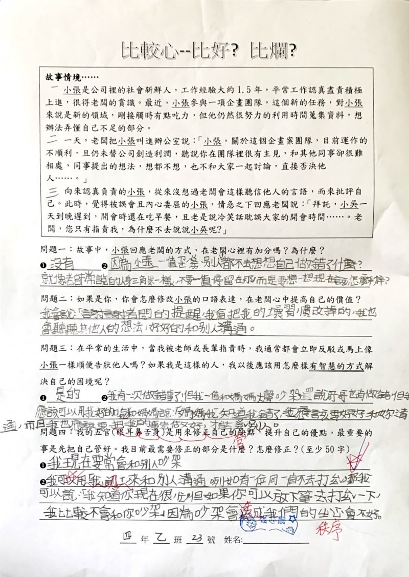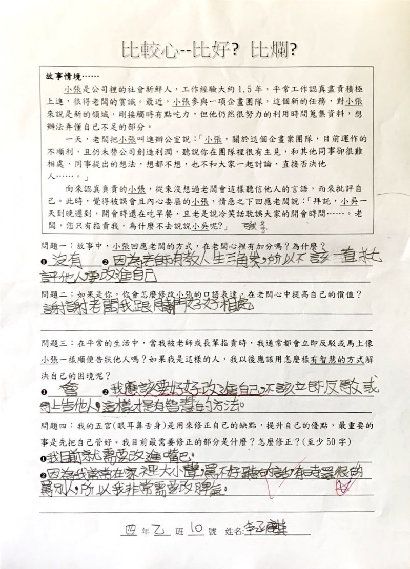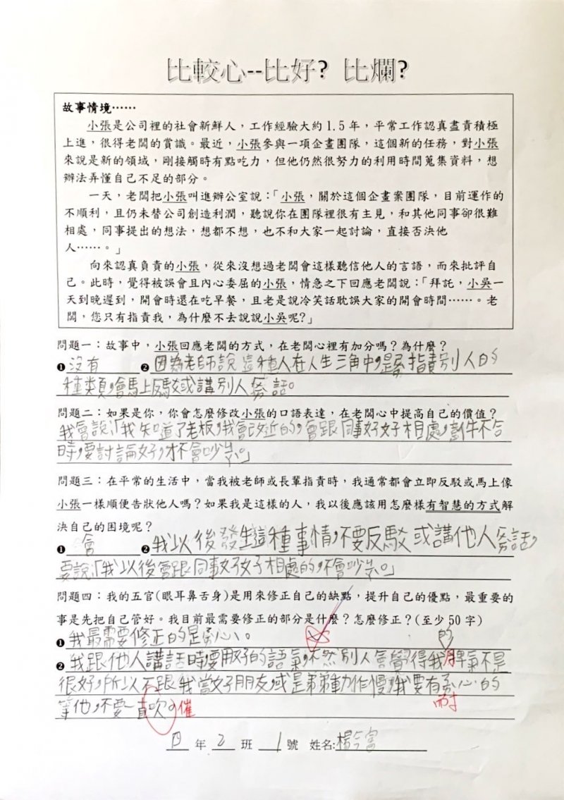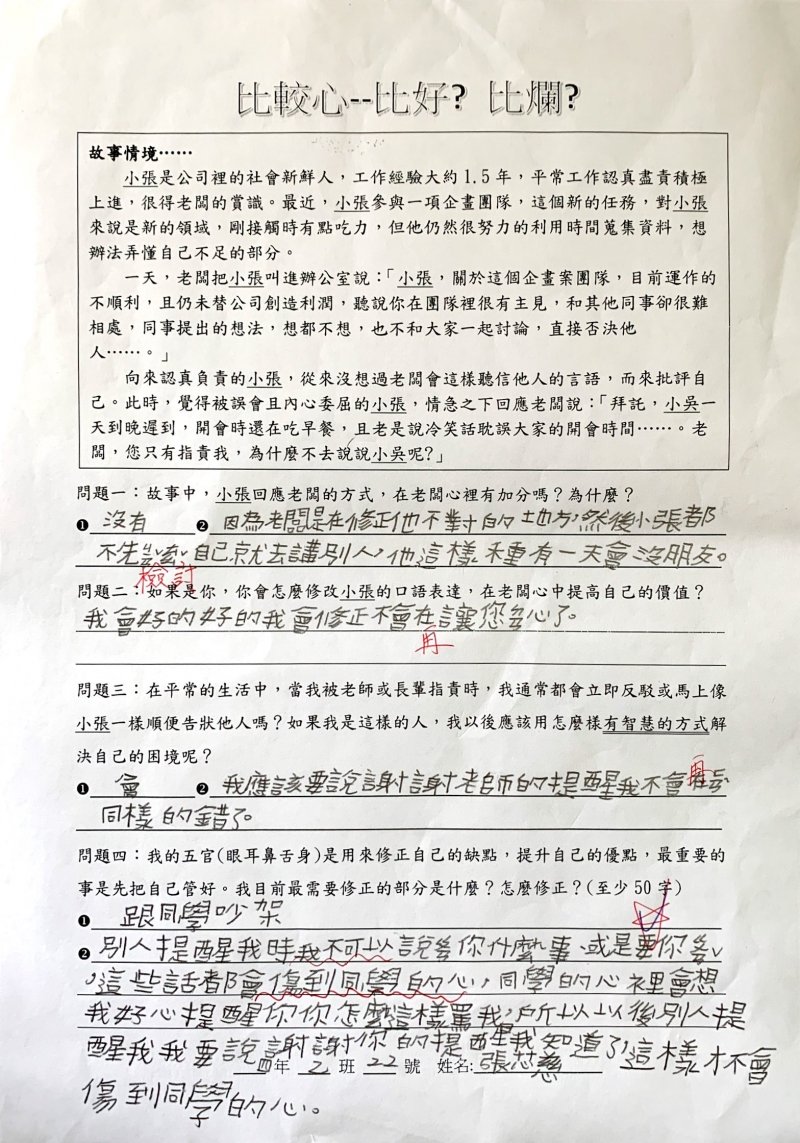 【比較心學習單優秀作品得主】