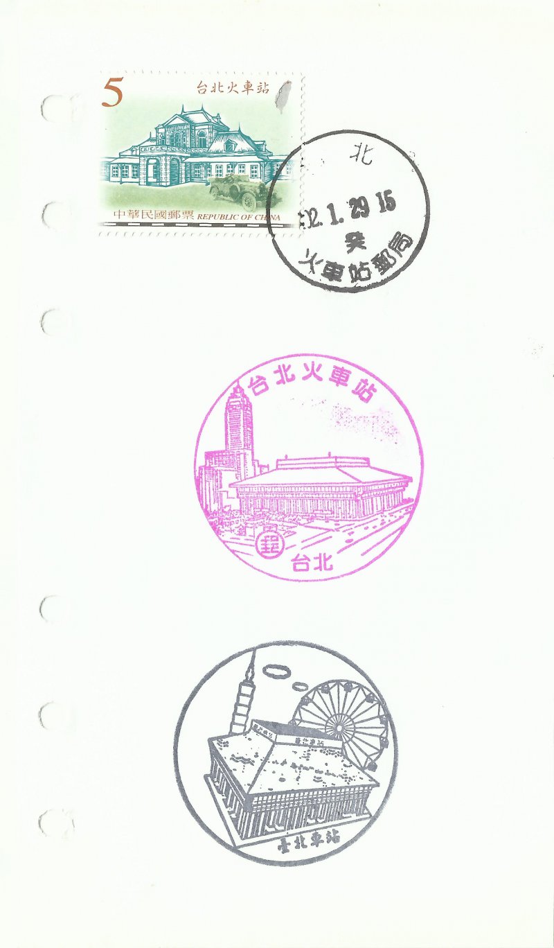 @風景戳:91.12.25啟用。台北火車站郵局(臺北市中正區北平西路3號,台北火車站內)