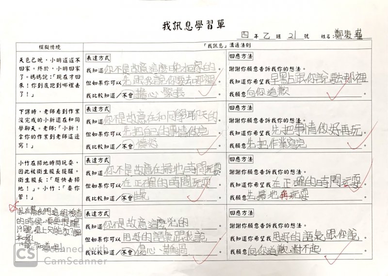 恭喜以下同學用心撰寫用故事打開「心」關係學習單,獲得班上作品優選: