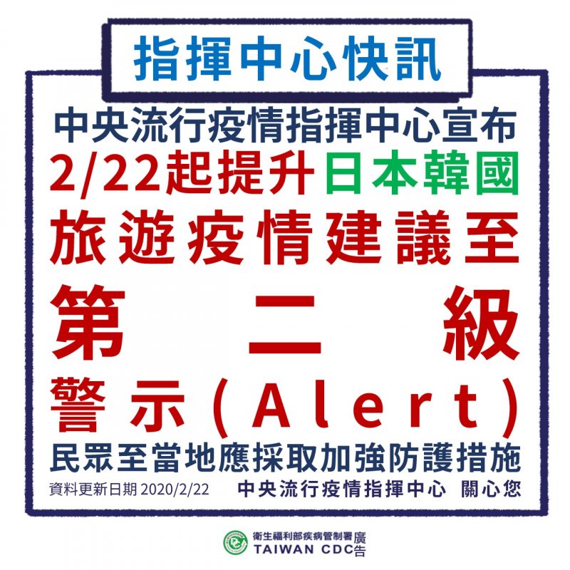 日本、韓國旅遊疫情建議至第二級警示(Alert)