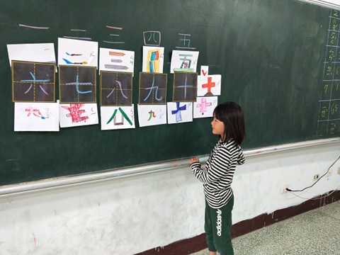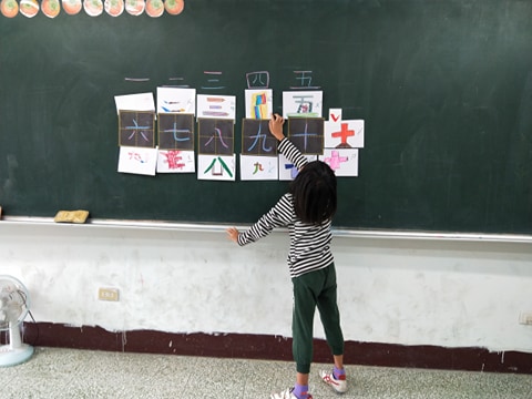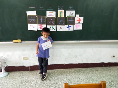 :那我們一起來想想看國字一到十各像什麼,分工合作一起製作字卡好嗎?