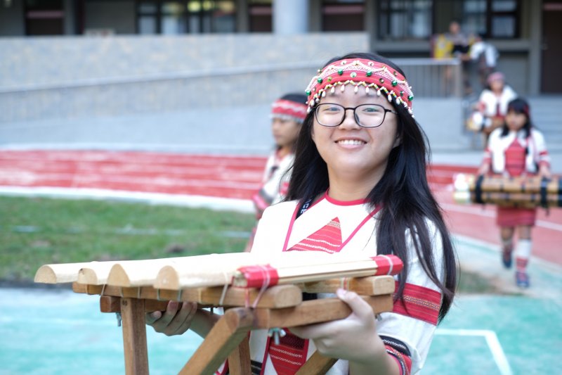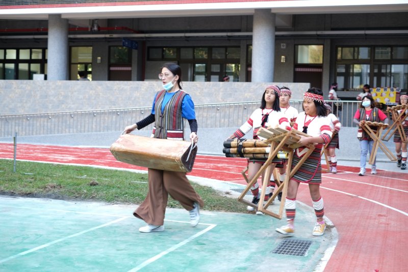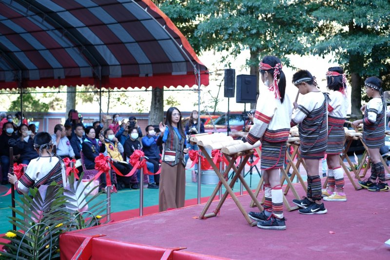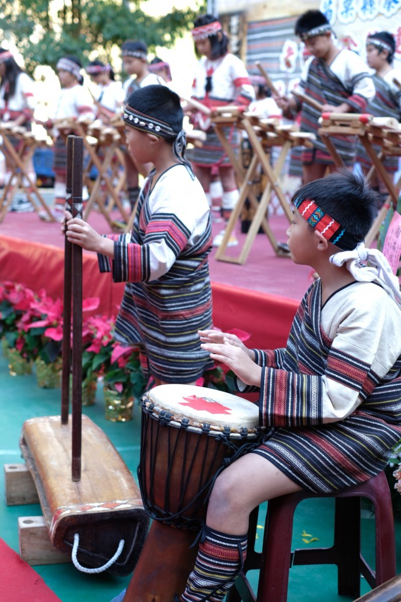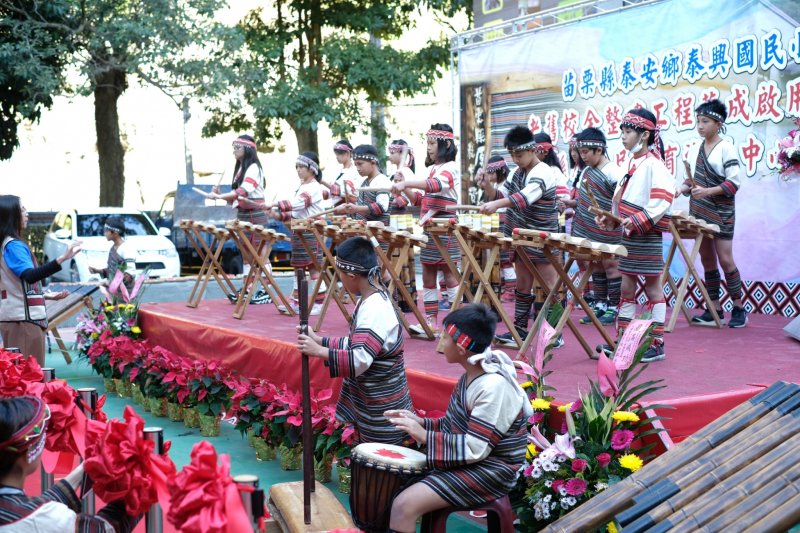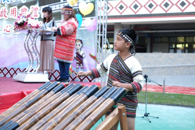 今天世我們學校新校舍落成典禮,我們裡用上課所學到的七音竹管琴,木琴、木鼓等樂器呈現給大家看