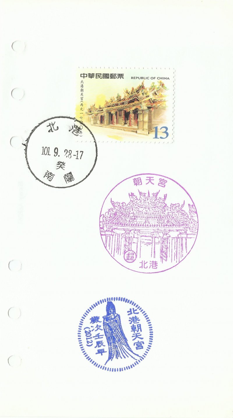 @風景戳:皆為91.12.25啟用。北港郵局(雲林縣北港鎮文化路54號)