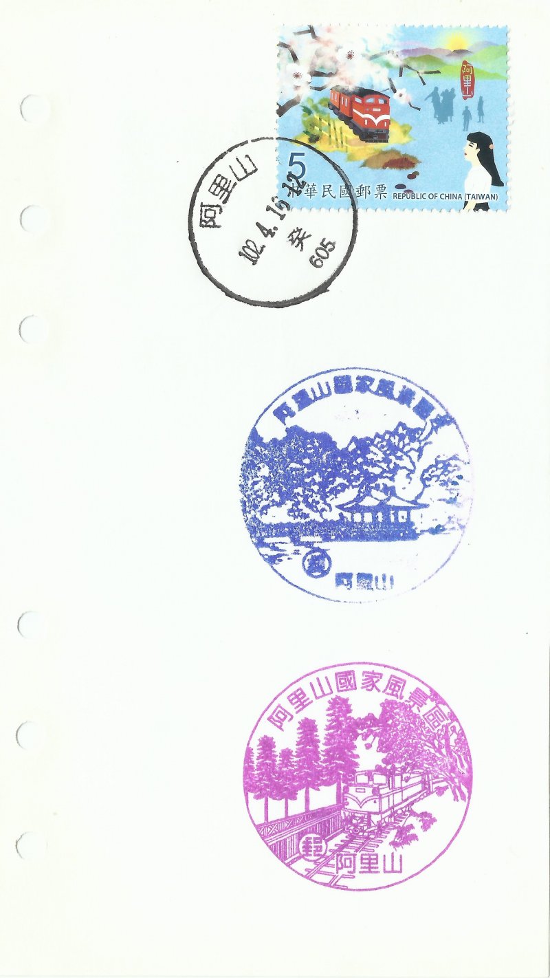 @風景戳:91.12.25啟用。阿里山郵局(嘉義縣阿里山鄉中正村2鄰東阿里山53號)