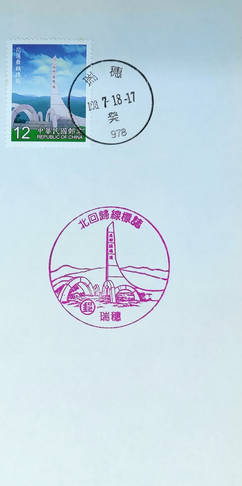 @郵票:89.6.21發行。特412臺灣北回歸線標誌郵票