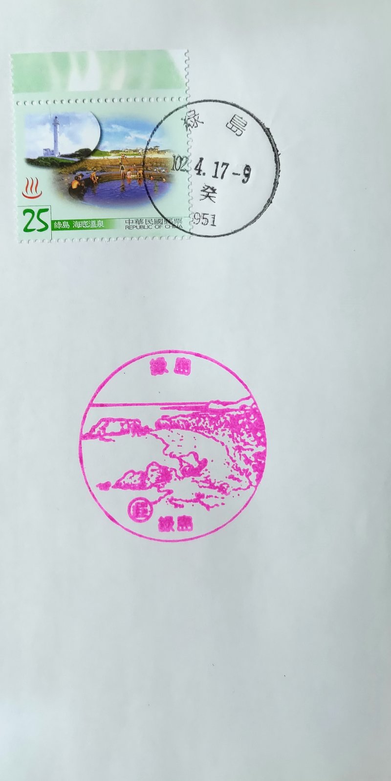 @風景戳:91.12.25。綠島郵局(臺東縣綠島鄉南寮村186號)