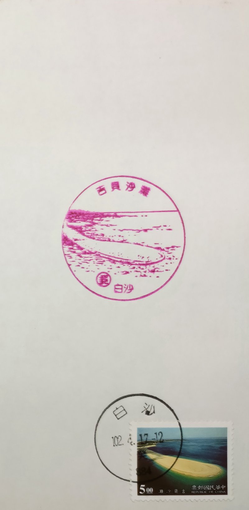 @風景戳:91.12.25啟用。白沙郵局(澎湖縣白沙鄉大赤崁356號)