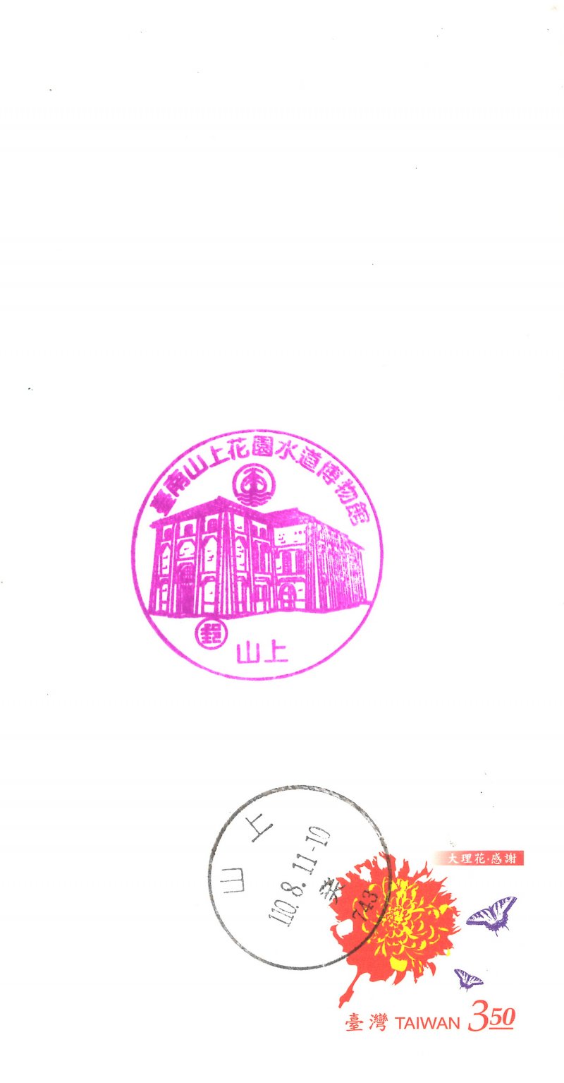 @風景戳:108.10.9啟用。台南山上郵局( 臺南市山上區山上里250號)