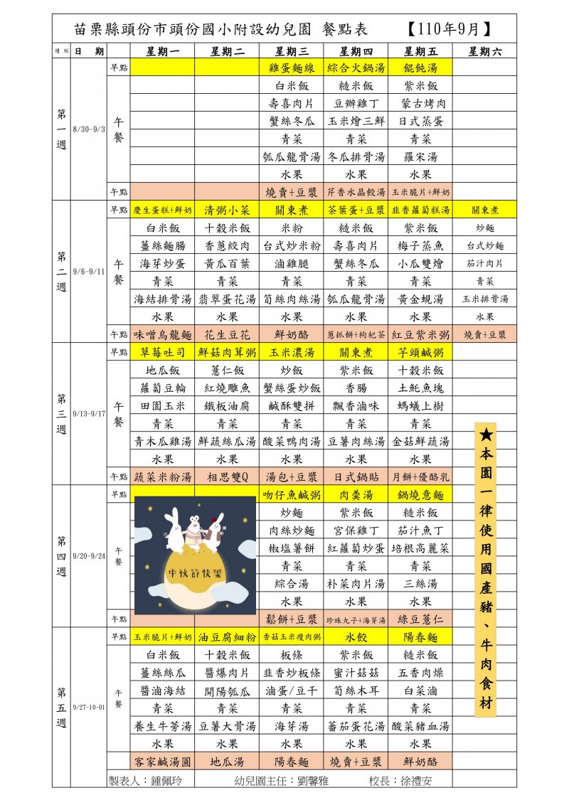 110 學年度 苗栗縣縣立頭份國小附設幼兒園