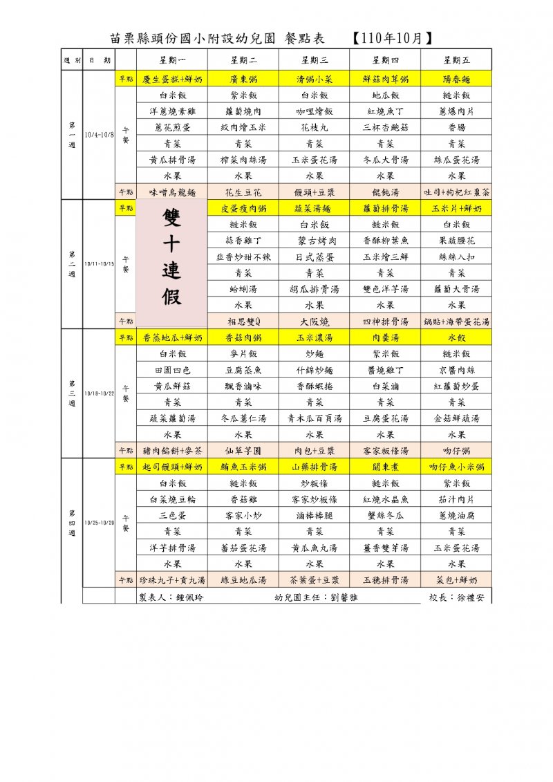 110 學年度 苗栗縣縣立頭份國小附設幼兒園