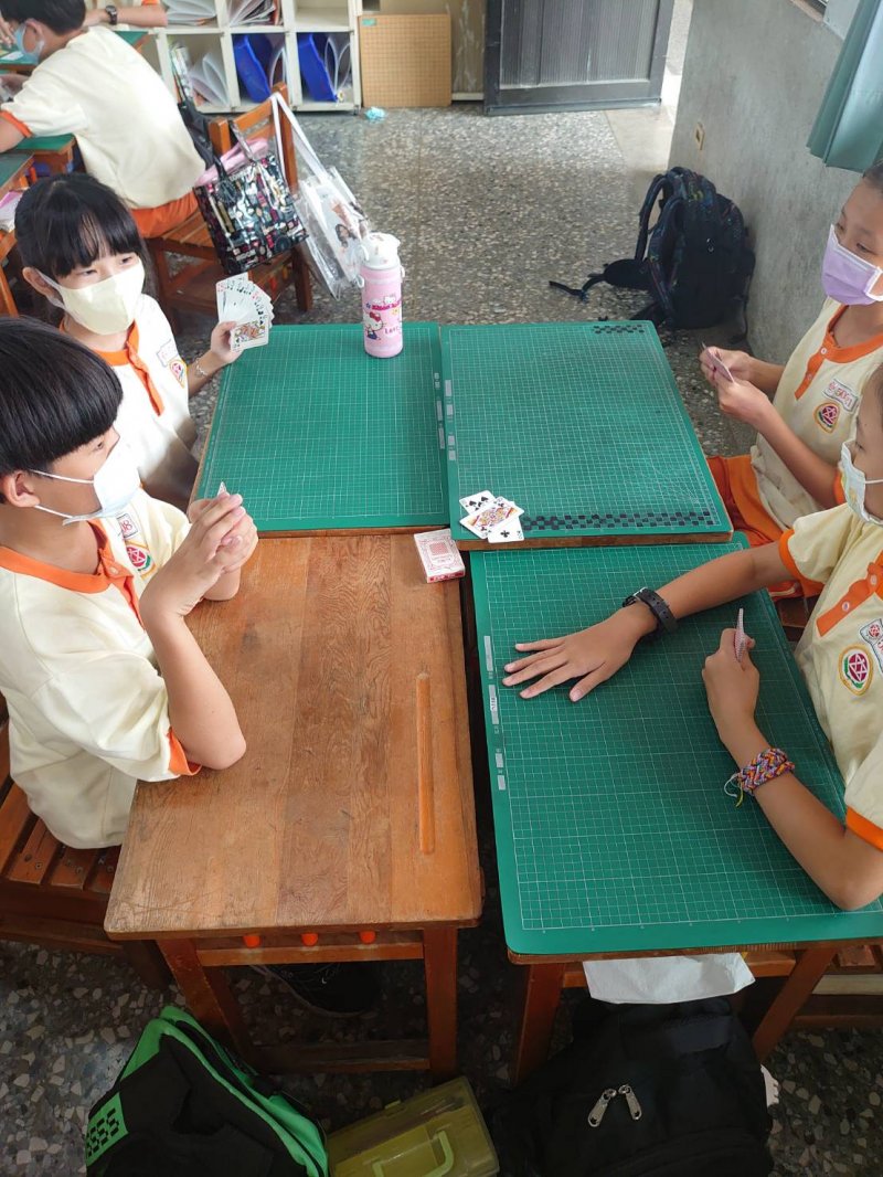 透過手中的撲克牌,孩子們必須出上一位出牌者數字的因數或倍數,最後發現當「因數遊戲」,出數字1時,下一位最難出牌;而「倍數遊戲」時,出數字7~13,下一位只能跟著出數字7~13相同數字的牌。藉由此遊戲,加強因倍數的概念。