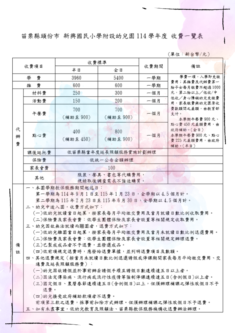 苗栗縣公私立幼兒園收退費辦法修正草案條文對照表