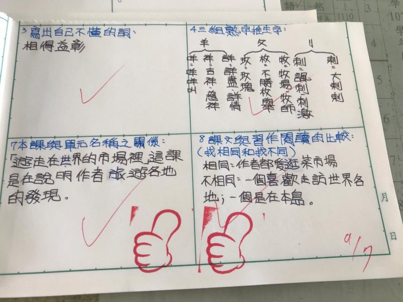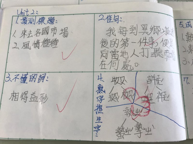 這一次預習國語,多了一本小本本,讓學生確實預習,可以明確知道學生的困難處在哪裡,也可以及時在課堂上教導。尤其是國語習作的閱讀測驗,預習本裡把課文與國習的閱讀測驗讓學生做比較,可以提升學生-比較評估的能力唷!