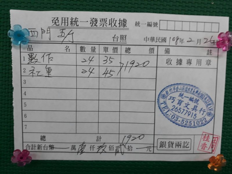 班級費用支出:簿本費