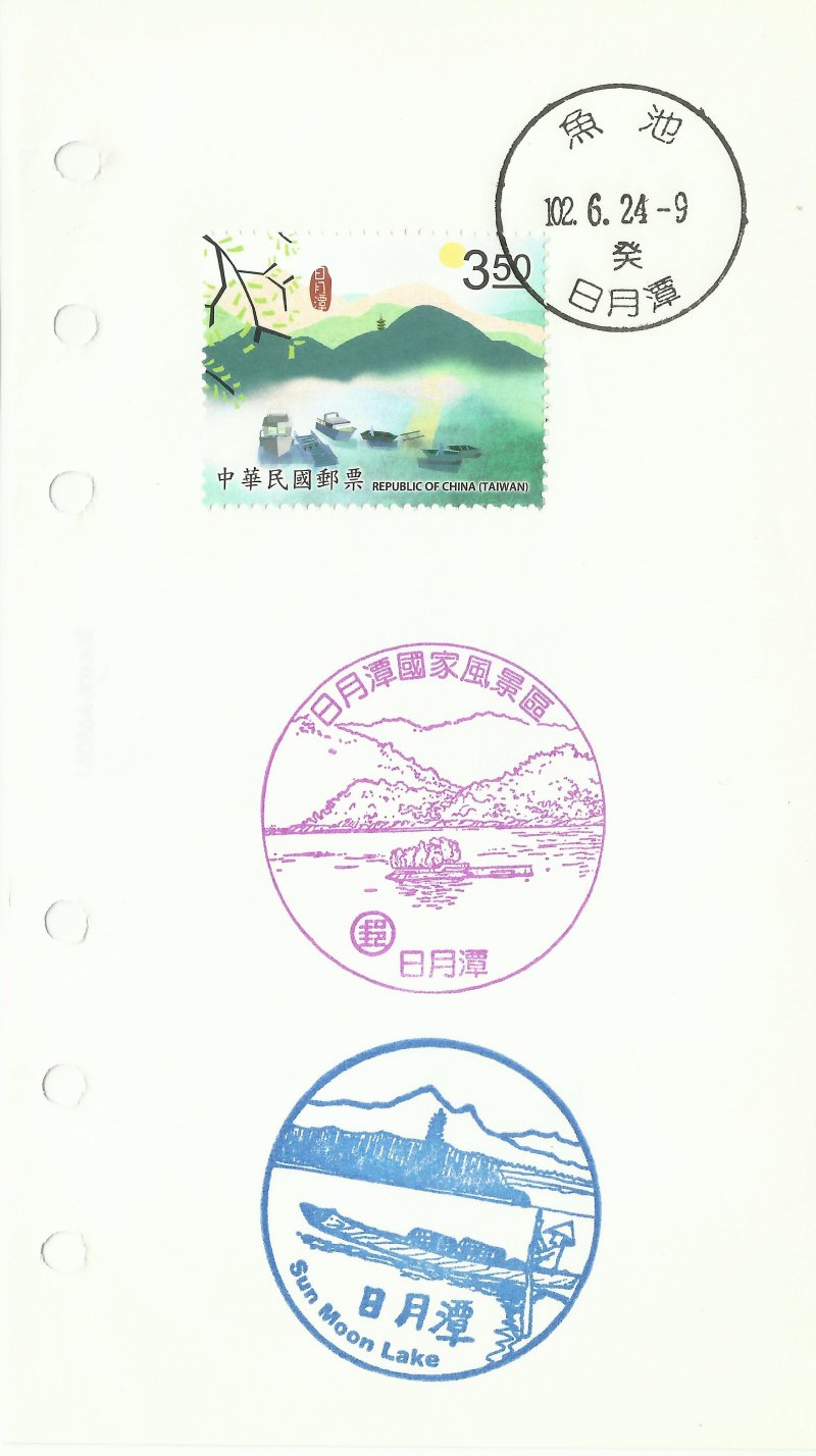 @風景戳:91.12.25啟用。日月潭郵局(南投縣魚池鄉名勝街36號)