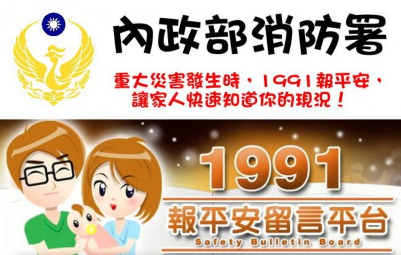當有重大災難發生,災區的電話系統損壞或是同時間太多人使用電話互相報平安時所導致的電話線路不通或壅塞,但 110、119 沒提供報平安等服務,這時候又該如何第一時間讓家人知道我們是安全的呢?消防署經參考日本 171 語音信箱系統,也在台灣建立了一套適合我們的報平安留言系統 - 「1991」。