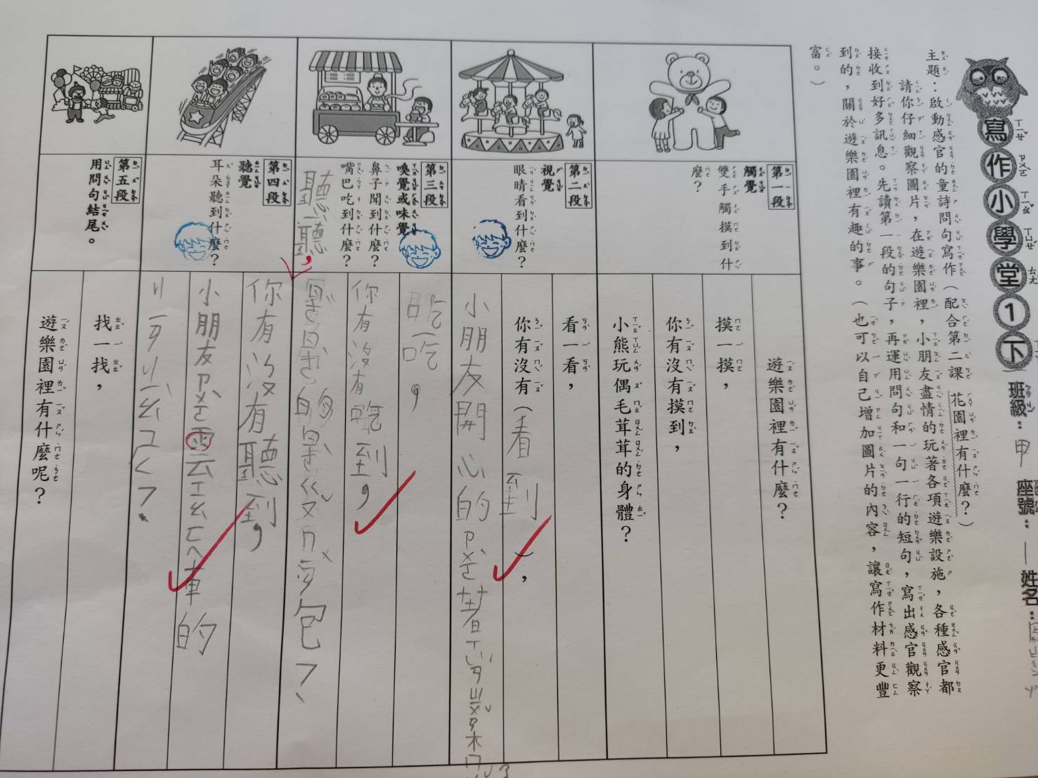透過五感可以將去過的地方描述得更加仔細,再結合課文第二課的童詩,小朋友是不是都寫得很棒呢?