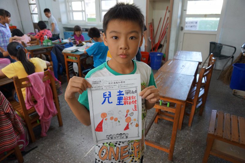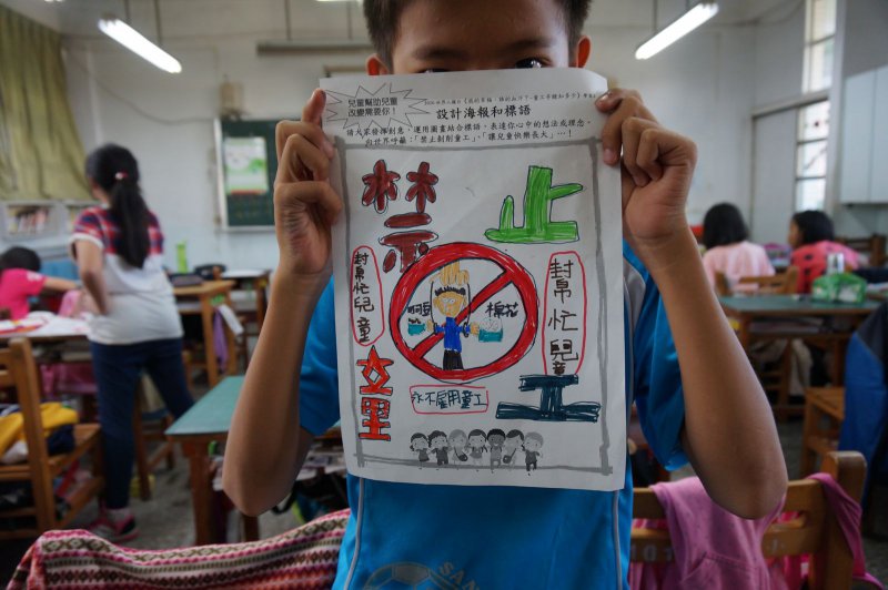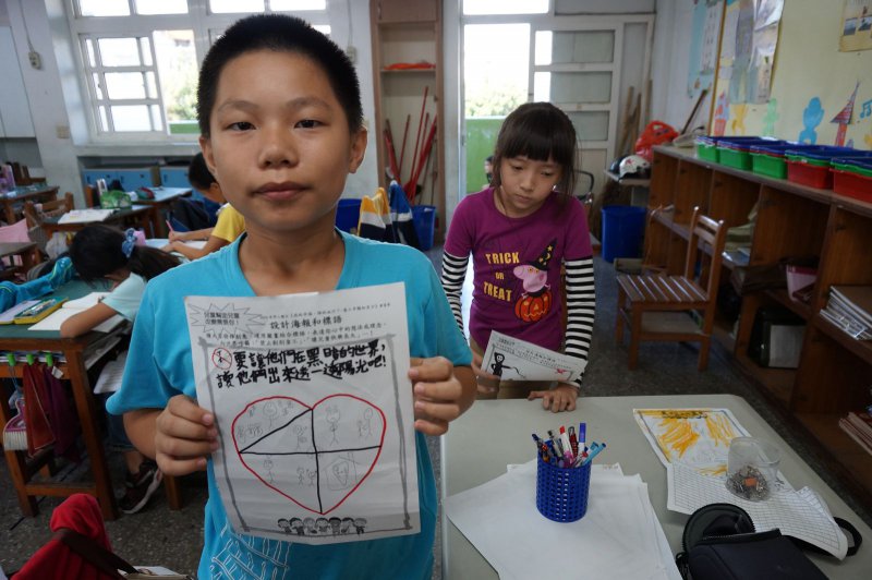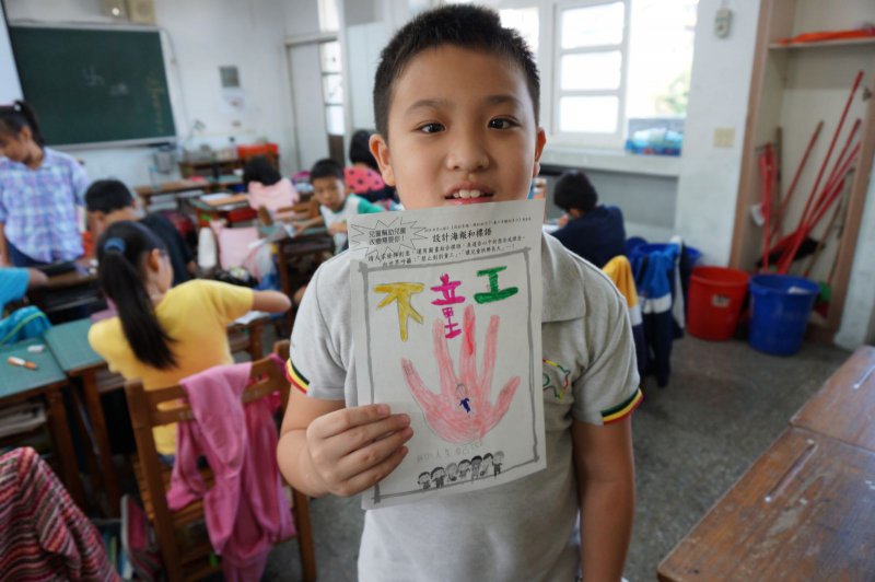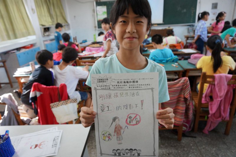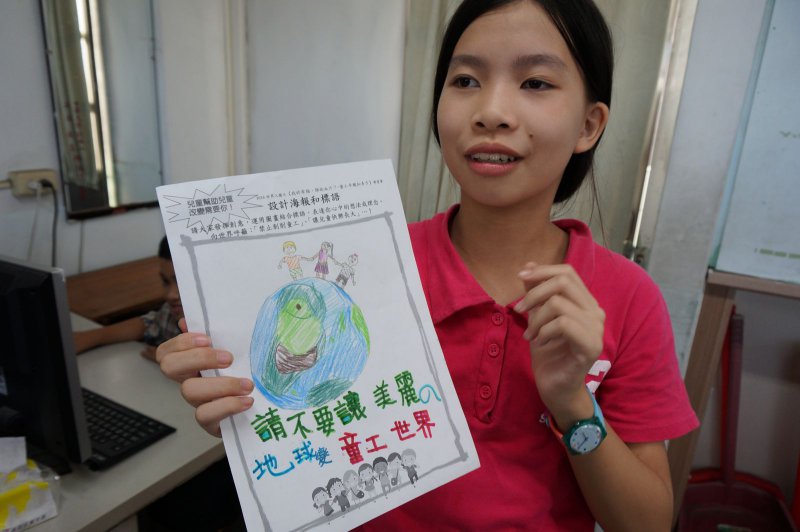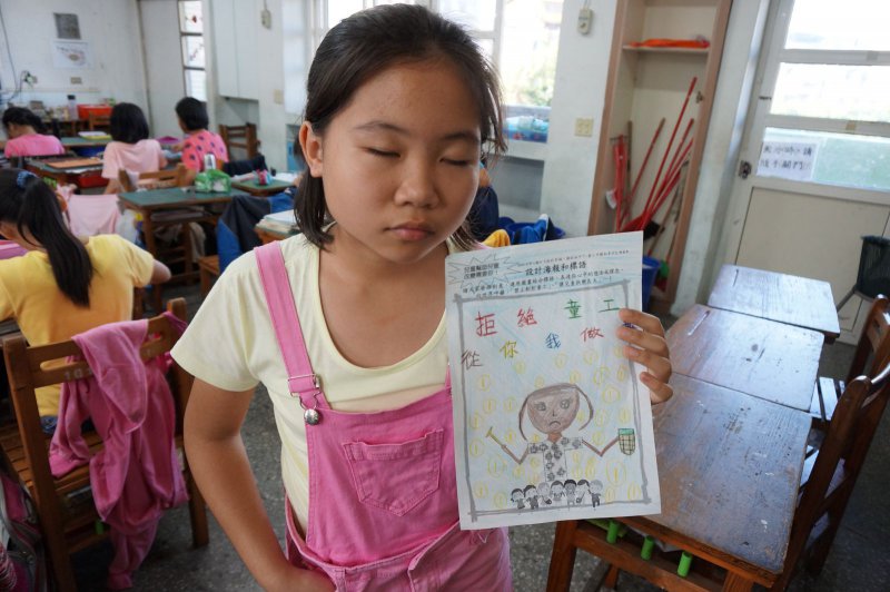利用美勞課與綜合課進行人權教育「拒絕童工」的課程宣導。