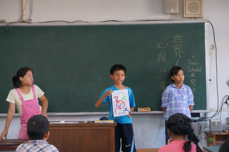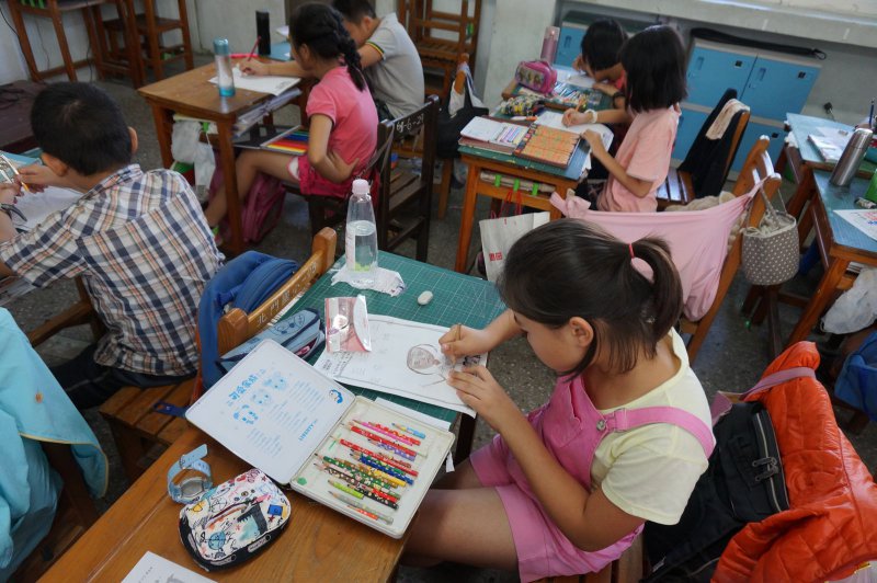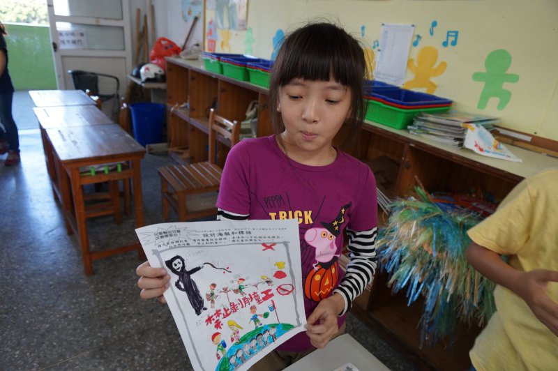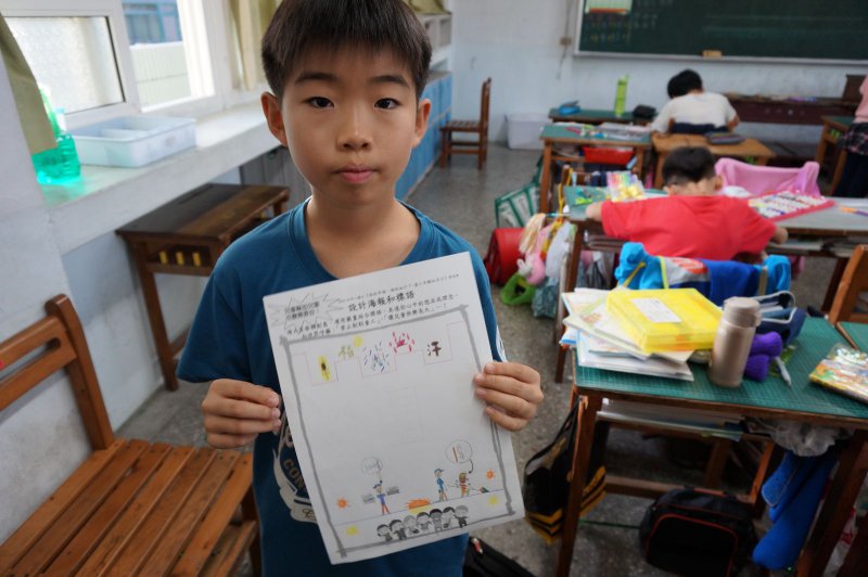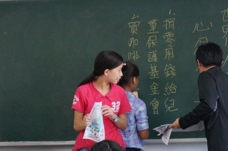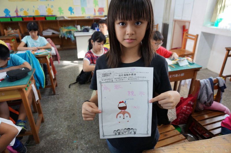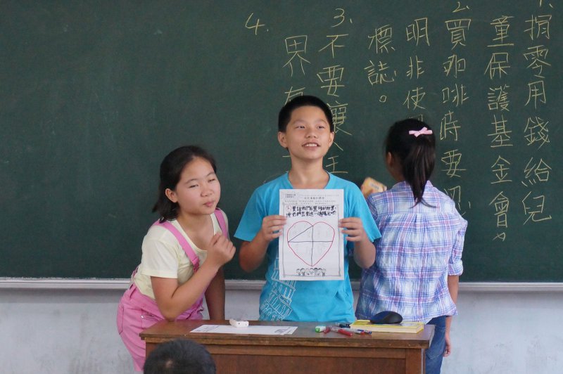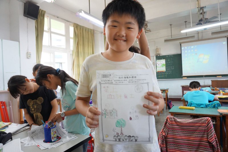 利用美勞課與綜合課進行人權教育「拒絕童工」的課程宣導。
