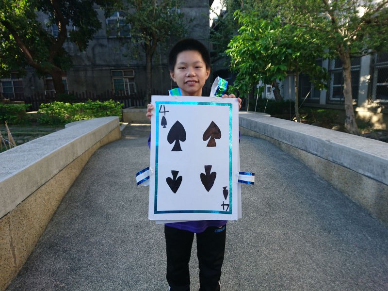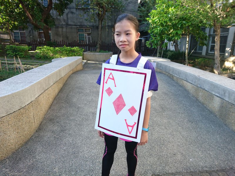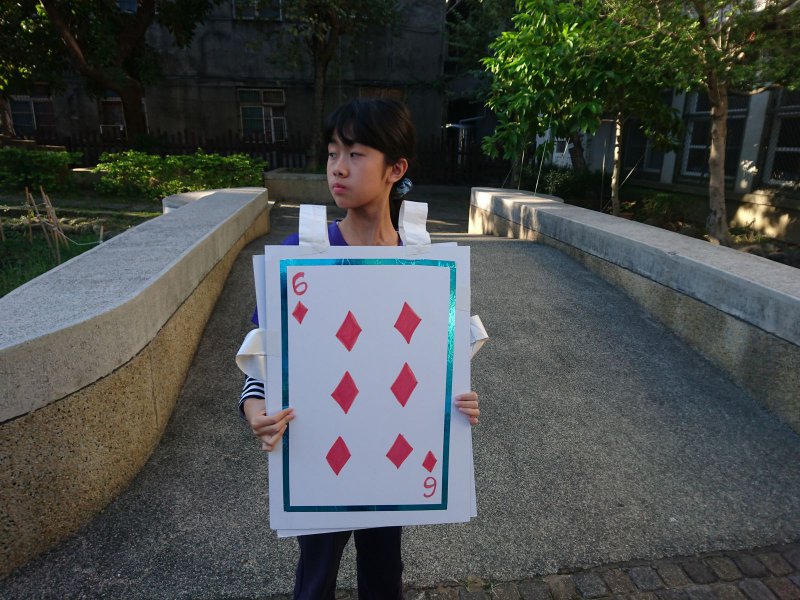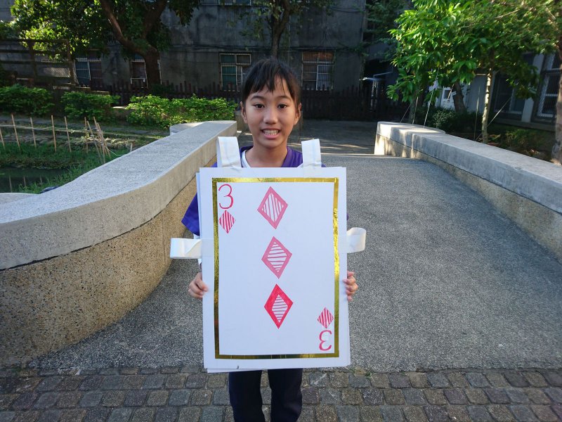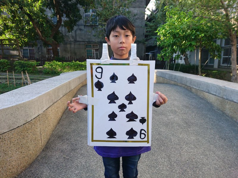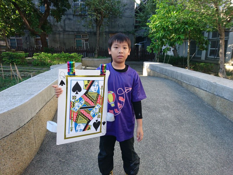 校慶時,同學們製作撲克牌服裝進行創意進場。