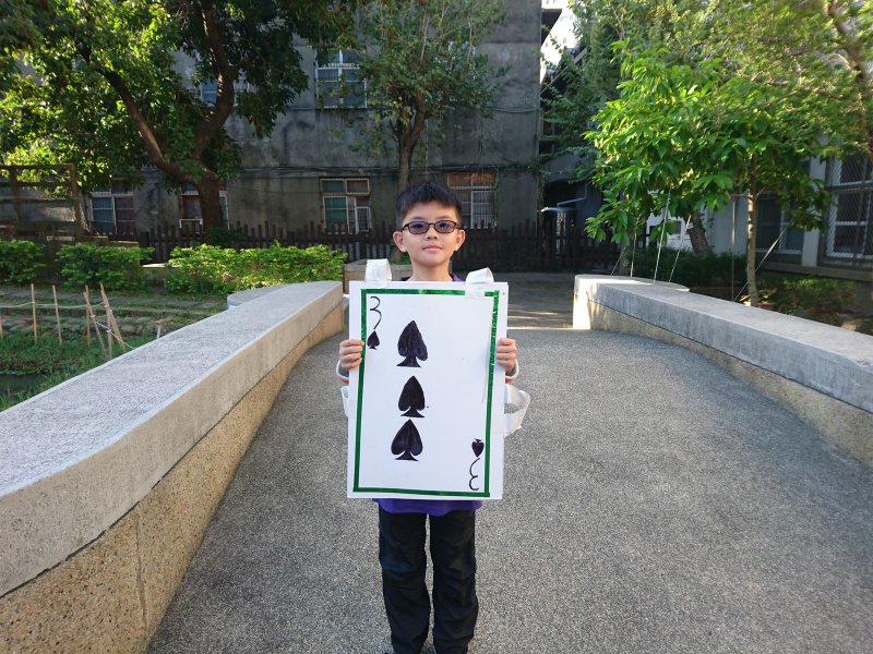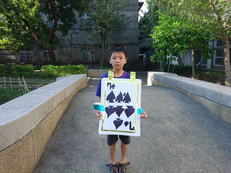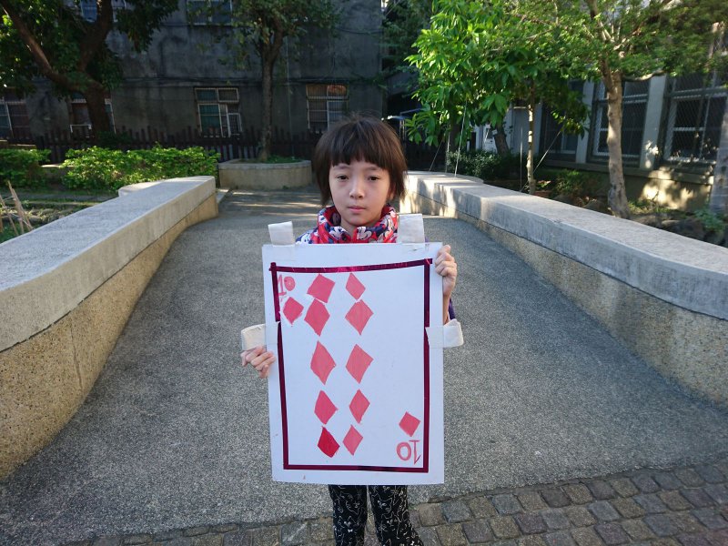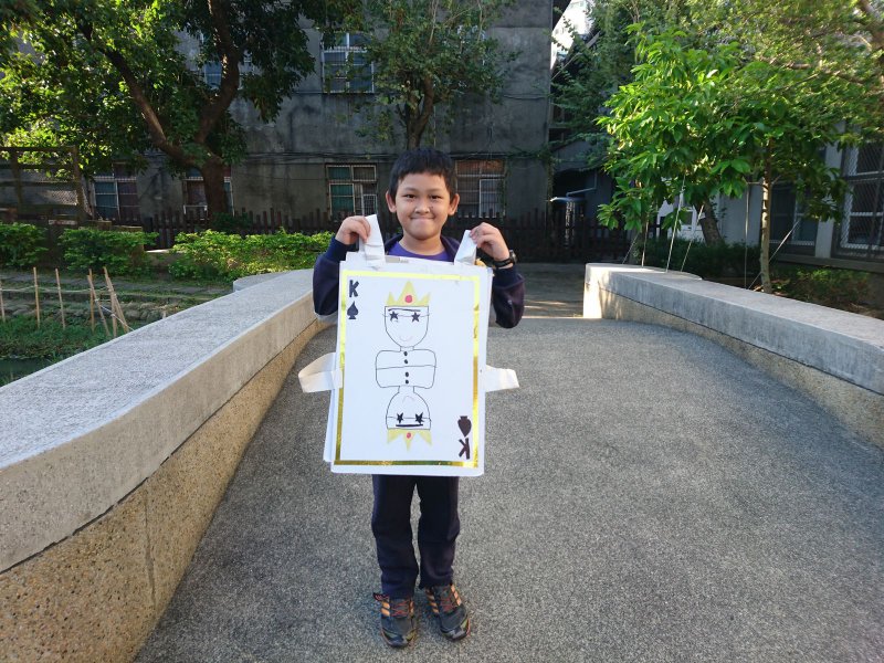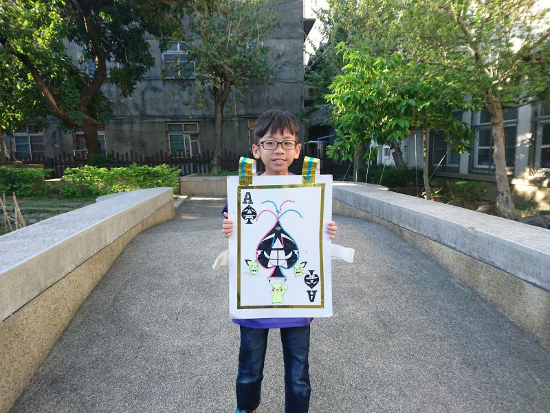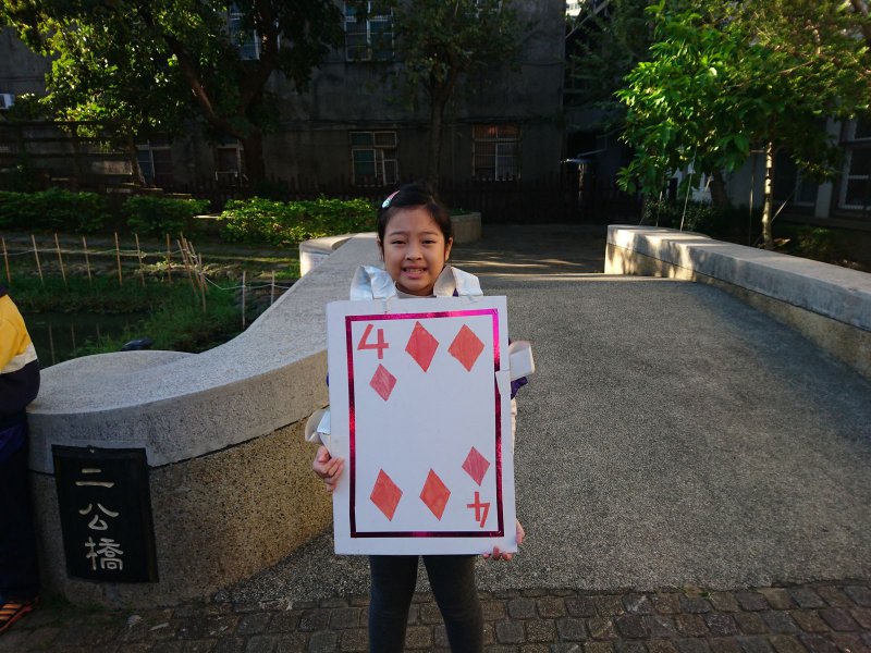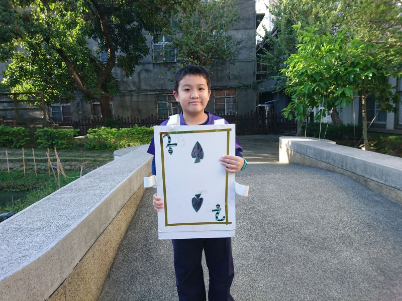 校慶時,同學們製作撲克牌服裝進行創意進場。