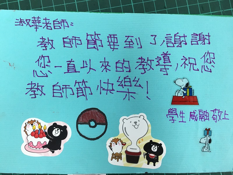 賀!本班參加校內敬師卡比賽成績優異~ 小芯獲五年級組第一名 小慈獲五年級組第二名