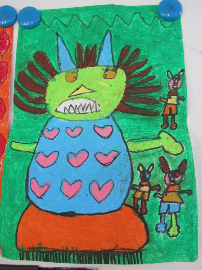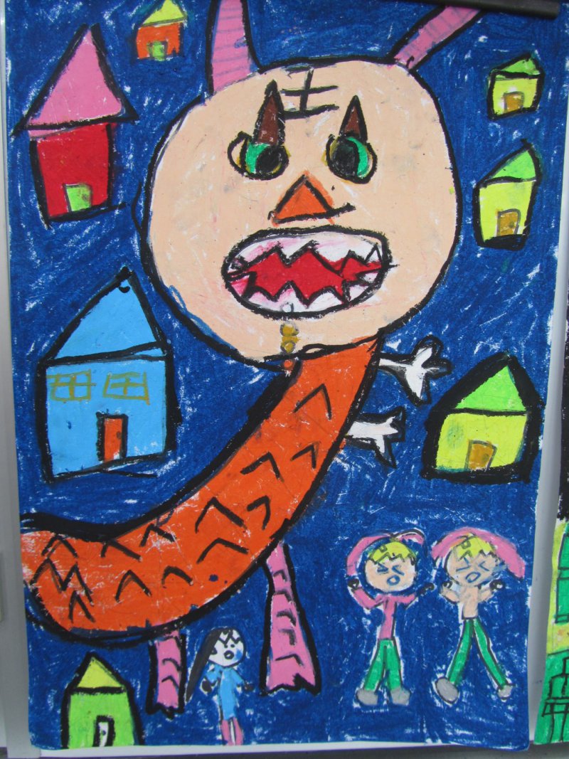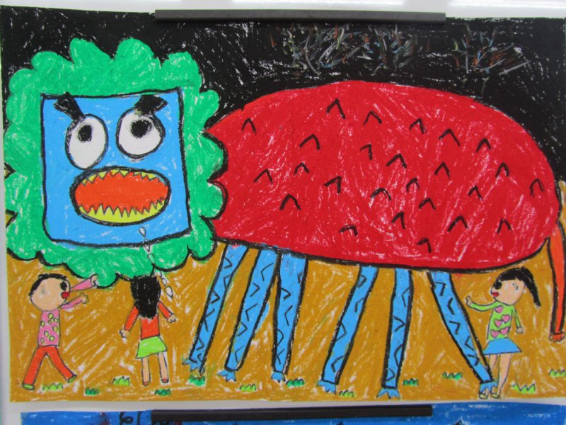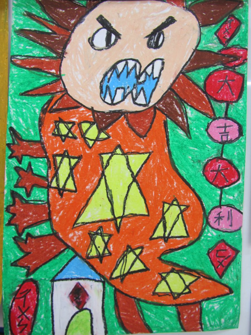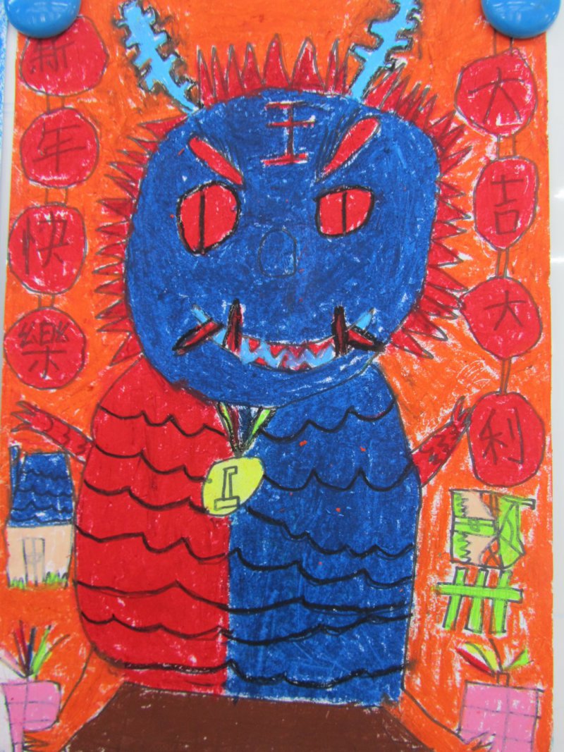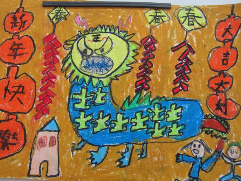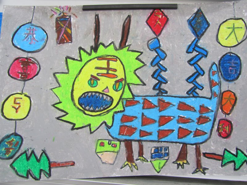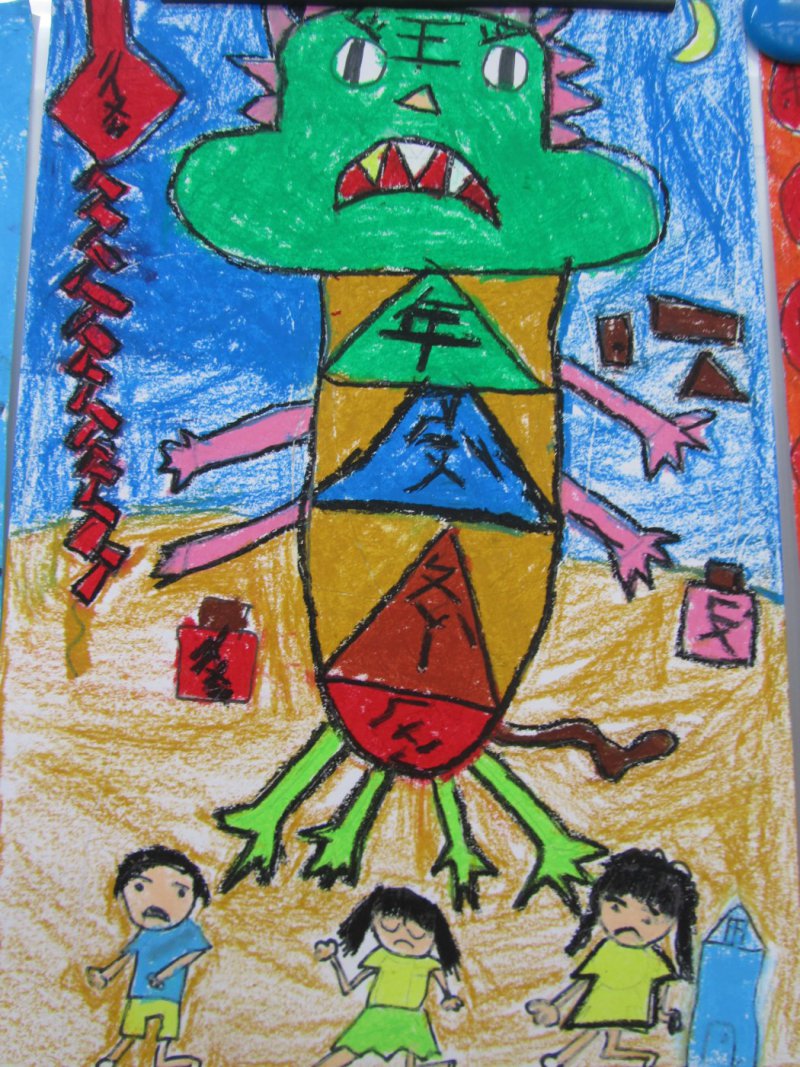 快過年了,老師講了有關於年的故事,最後我把想像中的年畫下來。