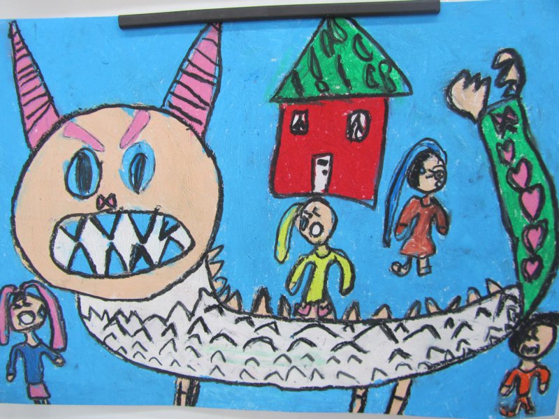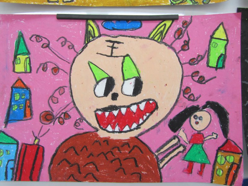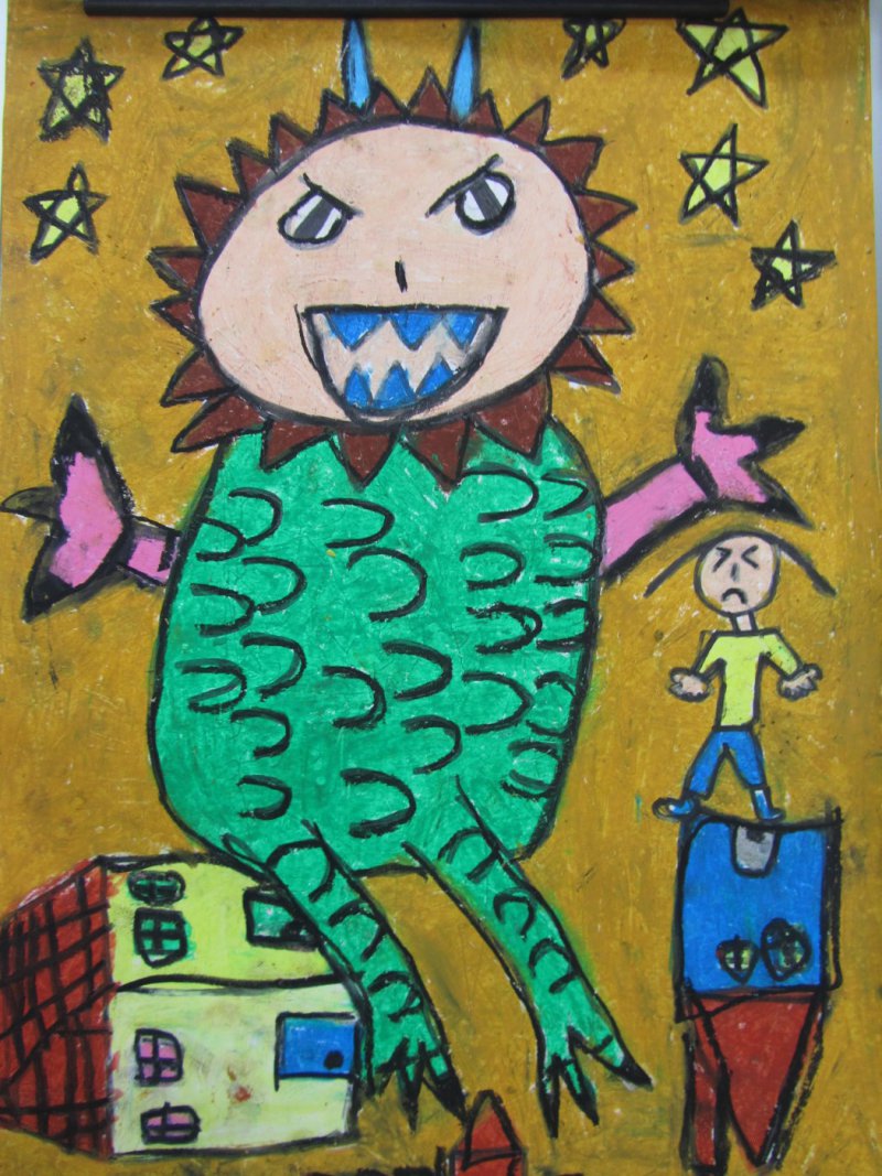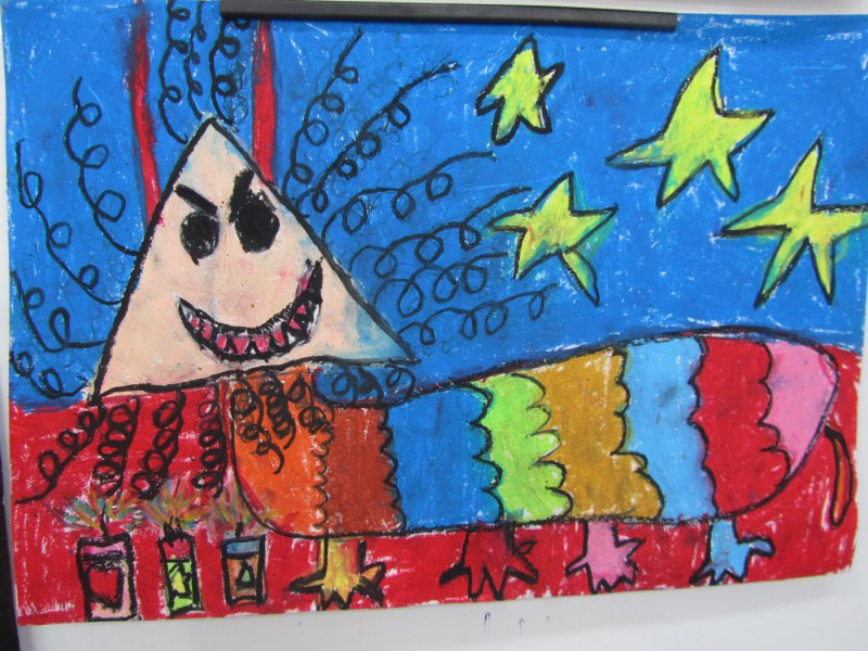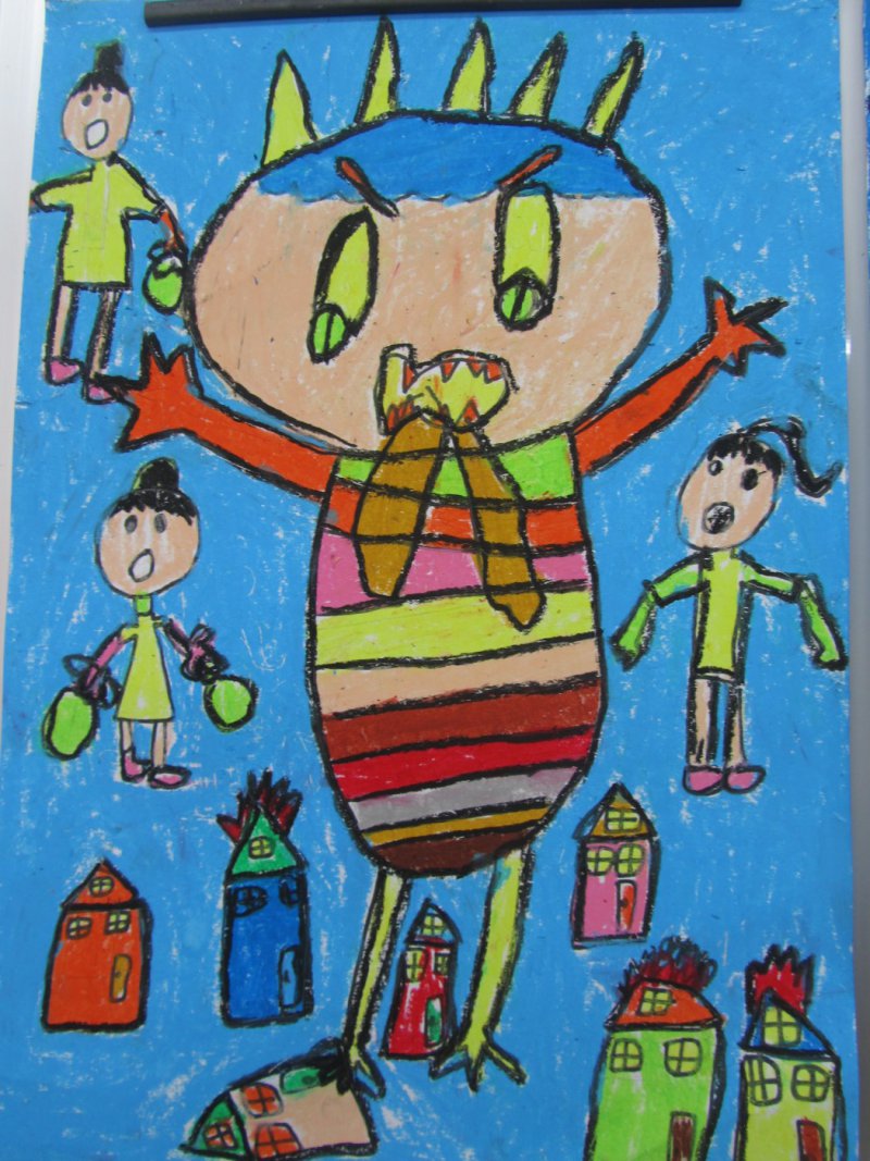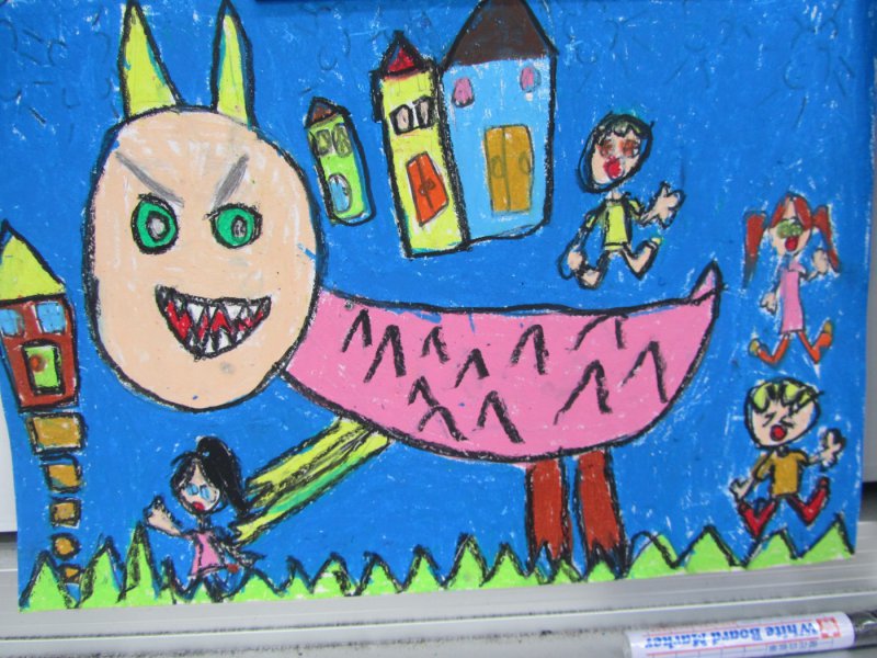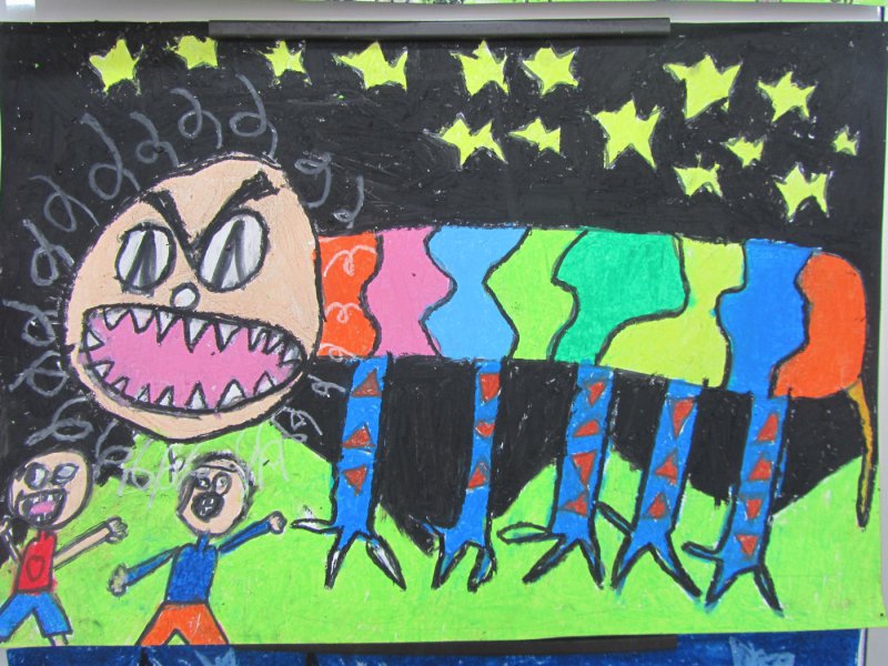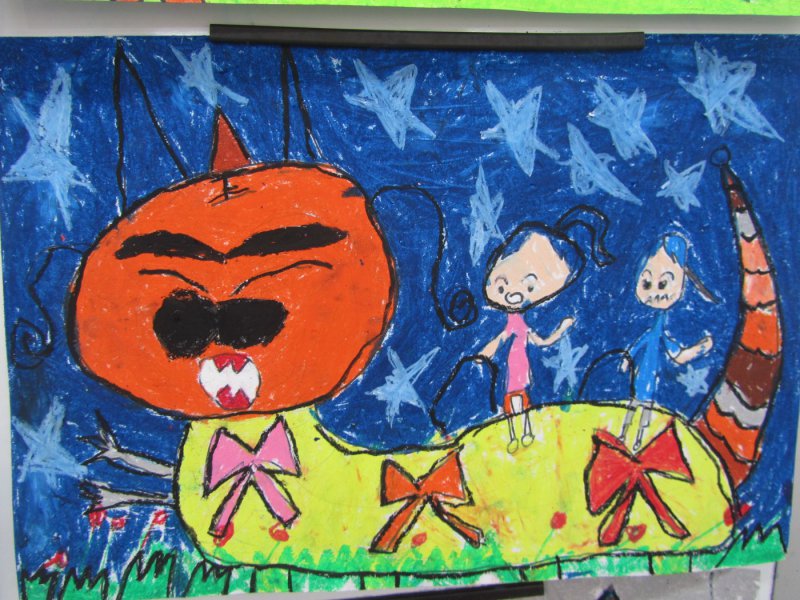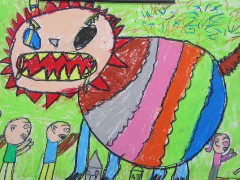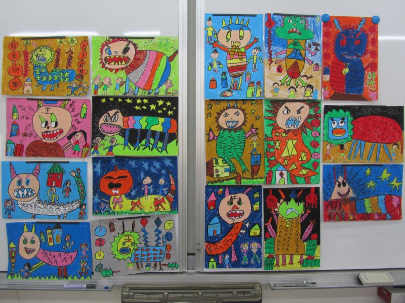 快過年了,老師講了有關於年的故事,最後我把想像中的年畫下來。