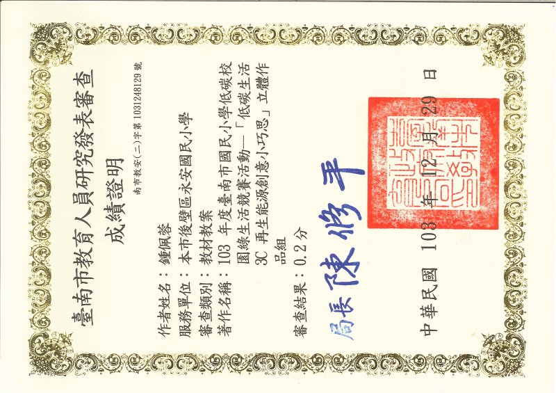 1) 蔡蕙珊-103-12 吳雅玲----研究發表審查成績證明