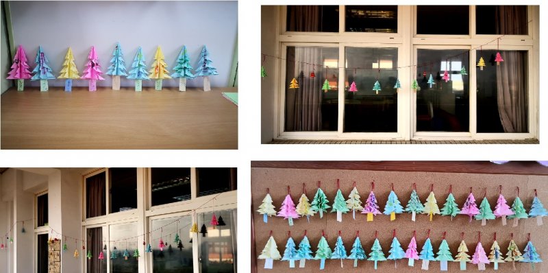 學生手工聖誕小樹,體驗聖誕節氣氛