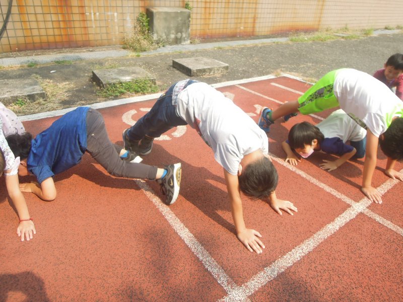 體能訓練:拱背穿越、伏地挺身、撐地舉高、仰走移動
